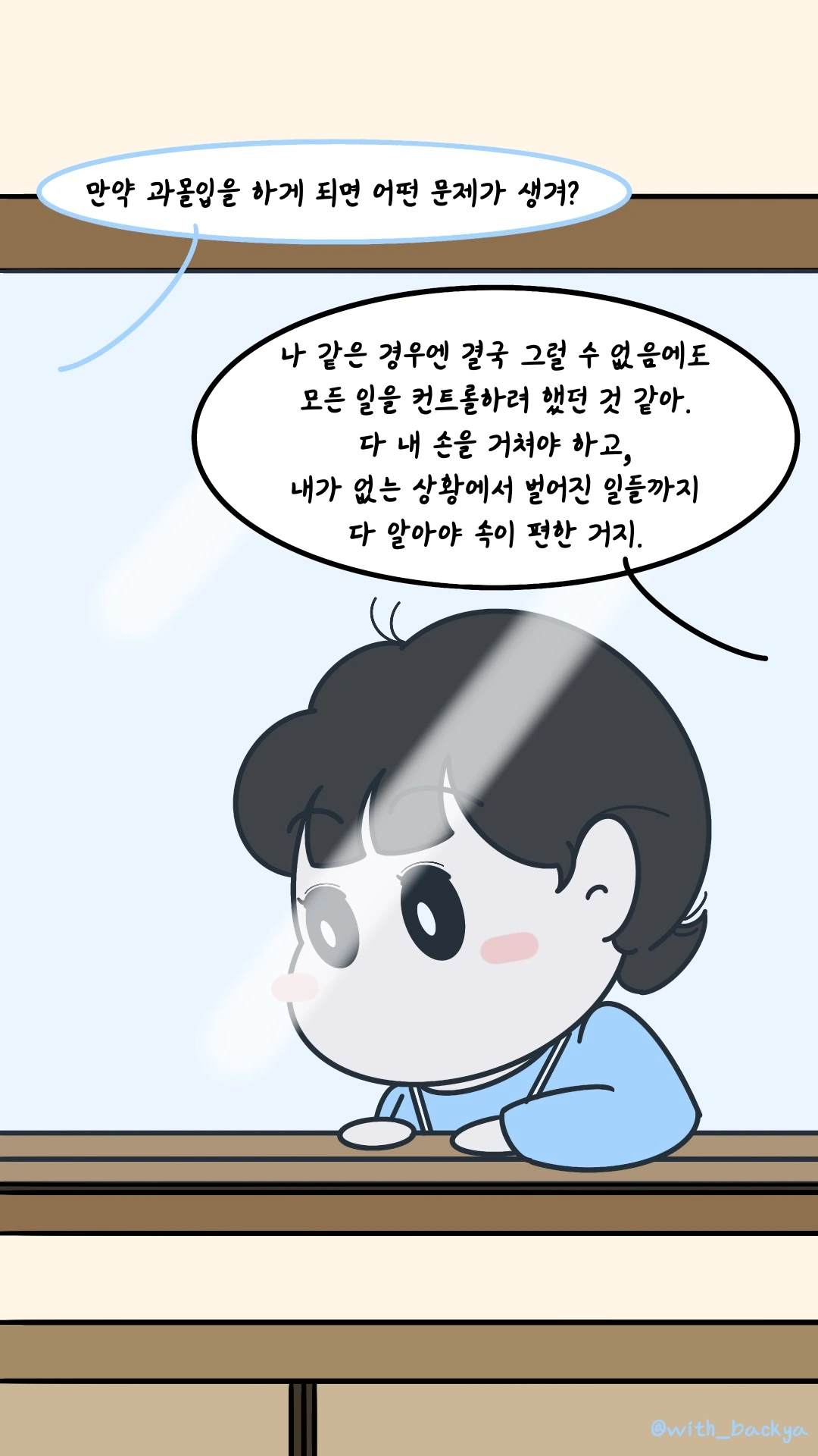 빈아_나 같은 경우엔 결국 그럴 수 없음에도 모든 일을 컨트롤하려 했던 것 같아. 다 내 손을 거쳐야 하고, 내가 없는 상황에서 벌어진 일들까지 다 알아야 속이 편한 거지.