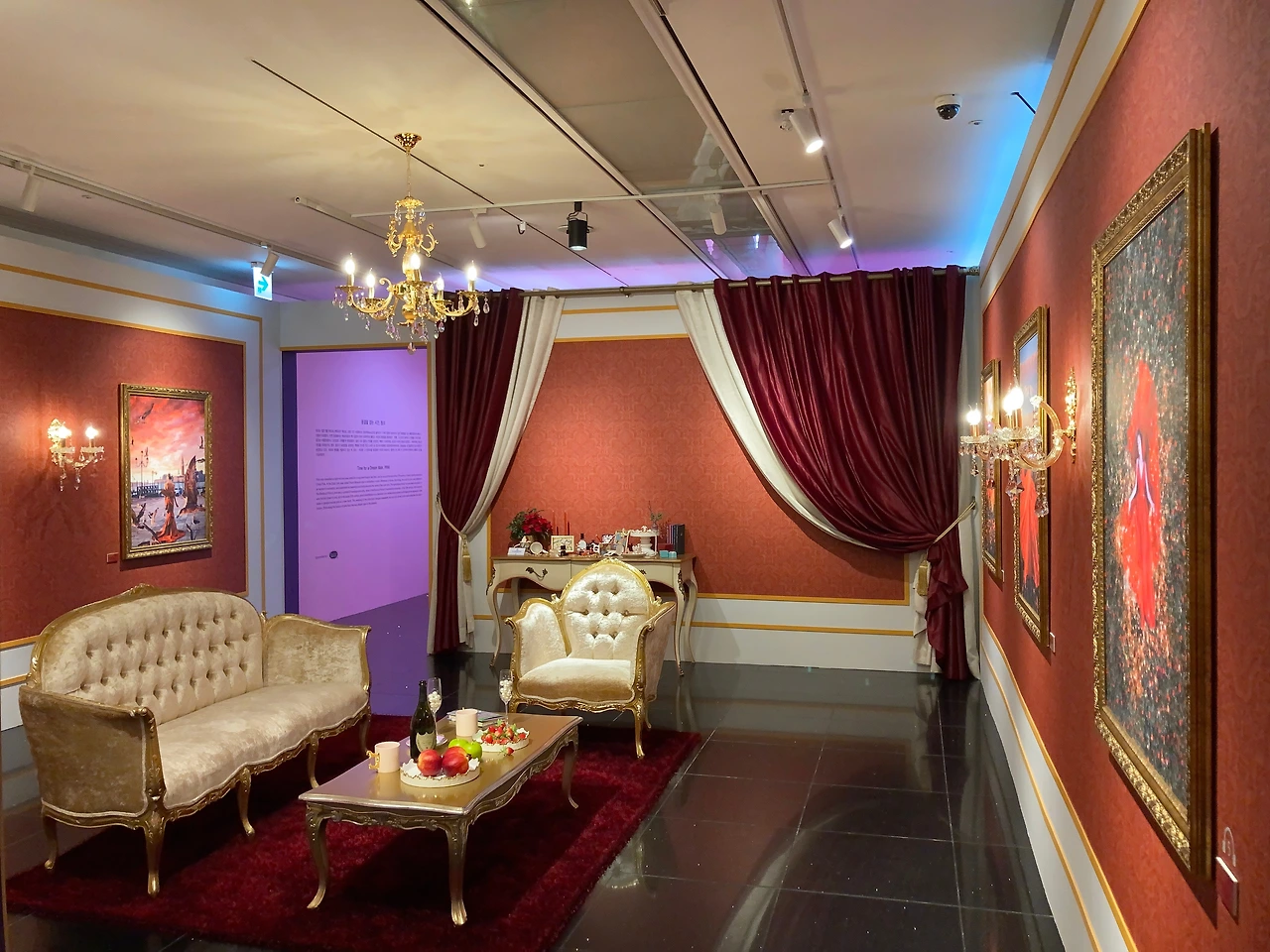 다음으로는 빨강인데 파파베르는 프랑스어로 양귀비라는 뜻이다. 차분한 벽지와 도톰한 카펫, 캡션까지 붉은색 분위기로 조성이 잘 되어있고 금색 액자들이 고풍스러운 느낌을 더한다. 다만 탁자에 놓인 모형 과일들이 조금 거슬린다. 여기도 마키바의 사진 작품이 계속된다.
