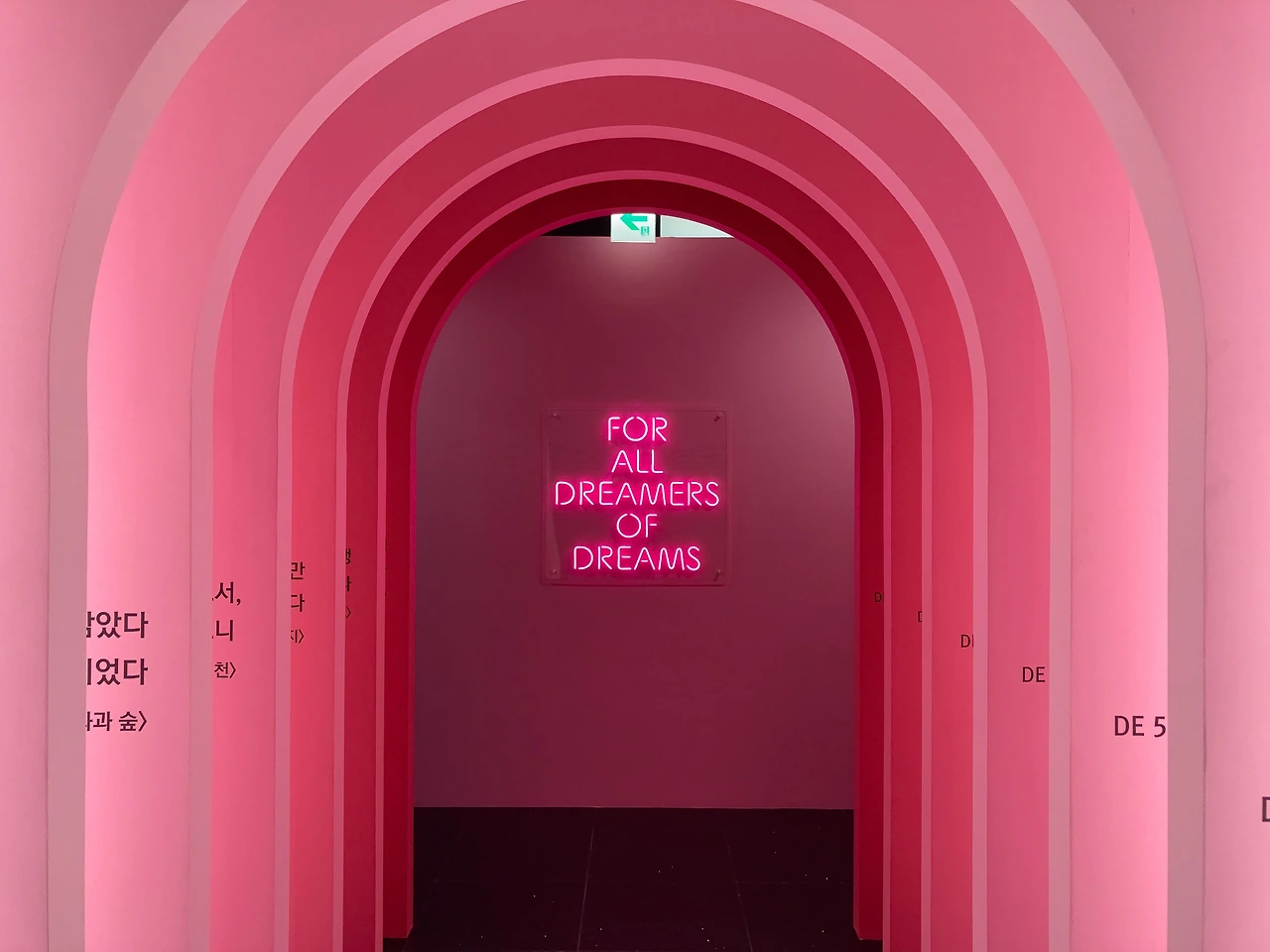 빨간 방을 나서면 각양각색의 분홍색 구역을 지난다. 분홍색의 역사와 의미를 시작으로 왼쪽에는 여러 문학 작품의 인용구가, 오른쪽에는 색상 이름이 적혀있다. 예쁘고 환상적인 분위기를 자아내는 공간이다. 다만 멋들어진 문구들이 분홍색과 어떻게 관련이 있는지는 잘 모르겠다.