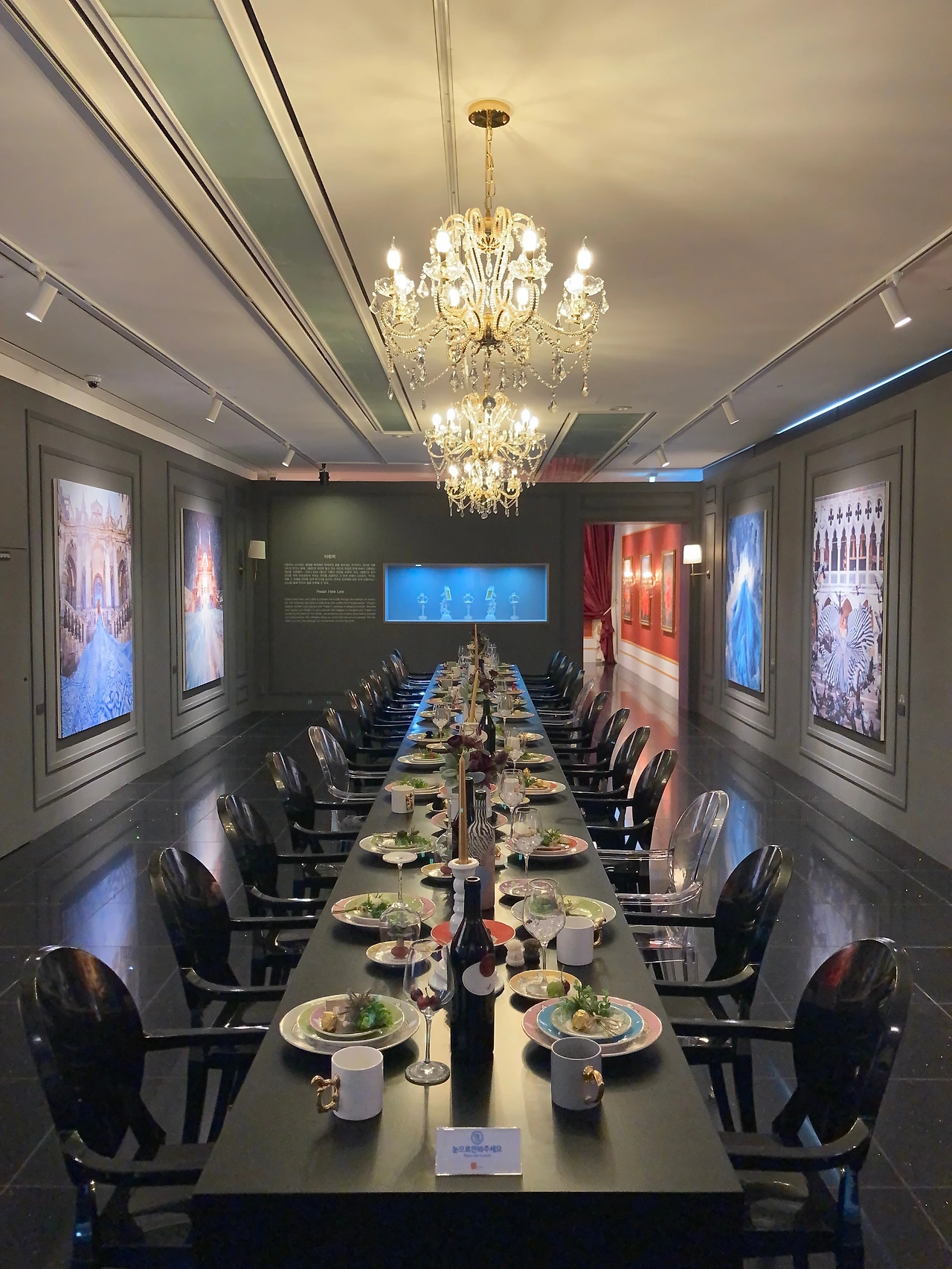 첫 번째는 검정이다. 깔끔하고 무난하고 세련된 색이다. 한편 모든 색을 흡수하는 색이며 모든 색의 우위에 있는 듯한 느낌도 준다. 러시아 사진작가인 크리스티나 마키바의 작품들이 캔버스에 프린팅 되어 있는데 굉장히 아름다운 사진들이 많다. 다만, 작품과 검정이라는 테마가 잘 어울리지 않는다는 생각이 들었다. 그리고 우아한 초대라는 부제목처럼 마치 관객을 초대하는 듯한 이미지로 구성한 것은 반갑고 좋았으나 테이블 세팅이나 의자가 약간은 조악한 느낌도 들었다.