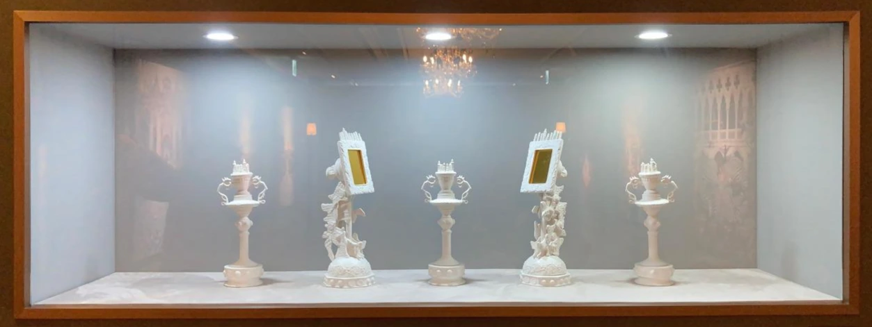 안쪽 벽면에는 '도자라는 물질을 매개체로 현대인의 삶을 빚어내는' 세라믹 아티스트 이환희 작가의 작품이 있는데 설명을 읽어보아도 왜 여기에 있는지는 잘 모르겠다. '이미저리 코드'라는 브랜드를 통해 고급스럽게 격식 있는 테이블웨어를 판매하기도 한다. 작품 제목도 사람 이름으로 되어있는데 대상을 의인화하여 식기류에도 고유한 캐릭터와 스토리를 부여한다고 한다.