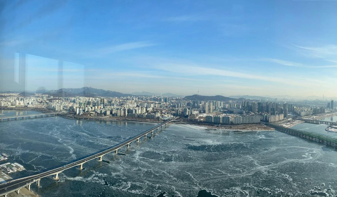 티켓팅을 하고 입구로 들어서면 바로 엘리베이터를 타고 60층으로 직행하는데 이 자체가 신선한 경험이다. 아마 우리나라, 어쩌면 세계에서 제일 높은 미술관이 아닐까 싶다. 높이가 있다 보니 뷰도 탁 트여있고 시원하다. 얼어붙은 한강 표면은 마치 강요배 작가의 그림을 보는 듯하다. 장난감처럼 보이는 자동차들과 빽빽하게 들어서 있는 아파트 건물들을 보니 참 우리가 아웅다웅, 열심히도 살아가고 있다는 생각이 든다.