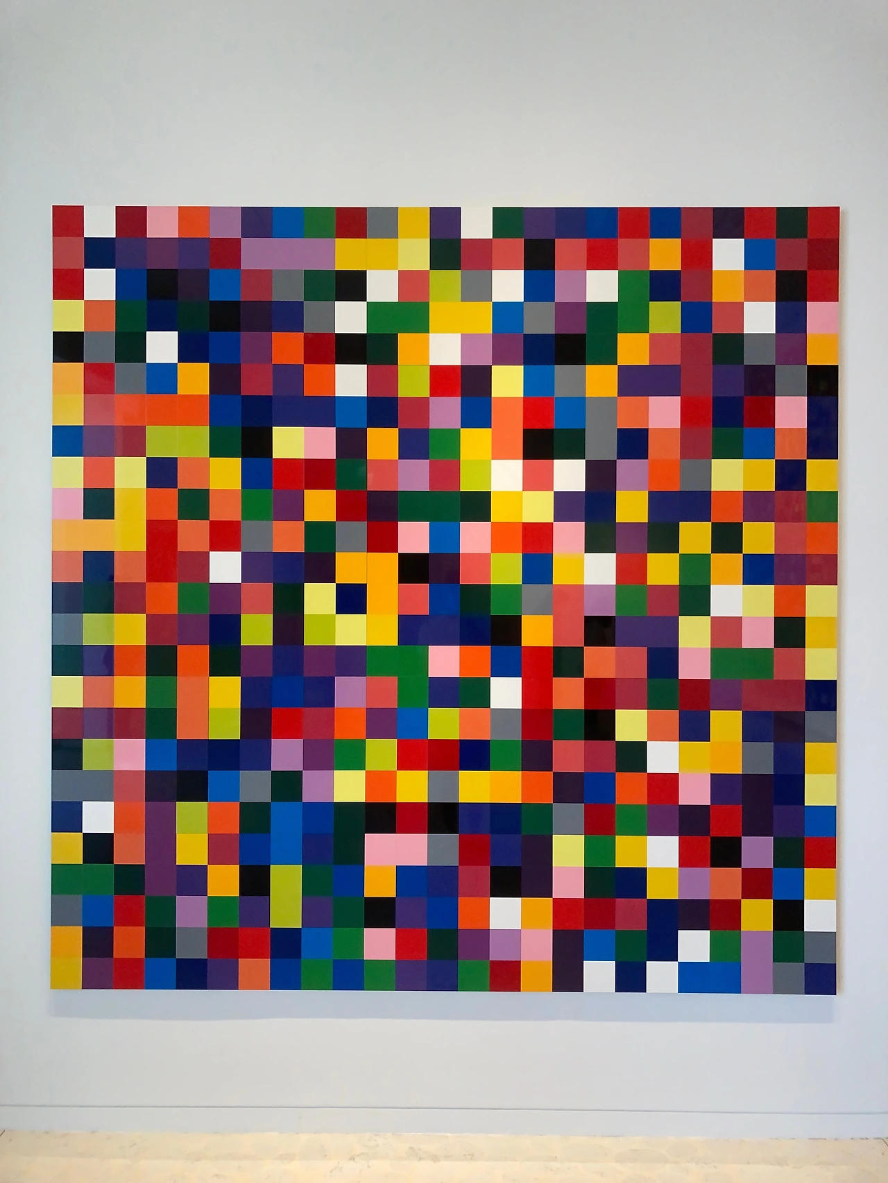 가만히 작품을 보다가 문득 이게 도대체 무슨 의민가라는 생각이 들었다. 리히터는 심지어 색의 조합 및 순서조차 정하지 않고 컴퓨터 프로그램을 통해 임의로 배치했다. 그 시스템 자체를 개발했다고는 하나 이것을 통해 말하고자 하는 것은 무엇이고 이 작품을 위해 어떤 노력을 했는가라는 생각을 지울 수 없었다. 물론 작가가 오래전부터 색에 대한 고찰을 해온 결과가 녹아있다는 사실도 알고 있다. 또한 예술을 좋아하는 사람으로서 겉으로 보기에 단순해 보이는 작품도 기저에 놓인 의미, 미술사적 흐름에서 차지하는 비중 등이 매우 중요하기에 그 표현방식을 잣대로 삼아 쉽게 만든 것처럼 보인다고 우리가 하찮게 생각할 것은 아니라는 것도 알고 있다.