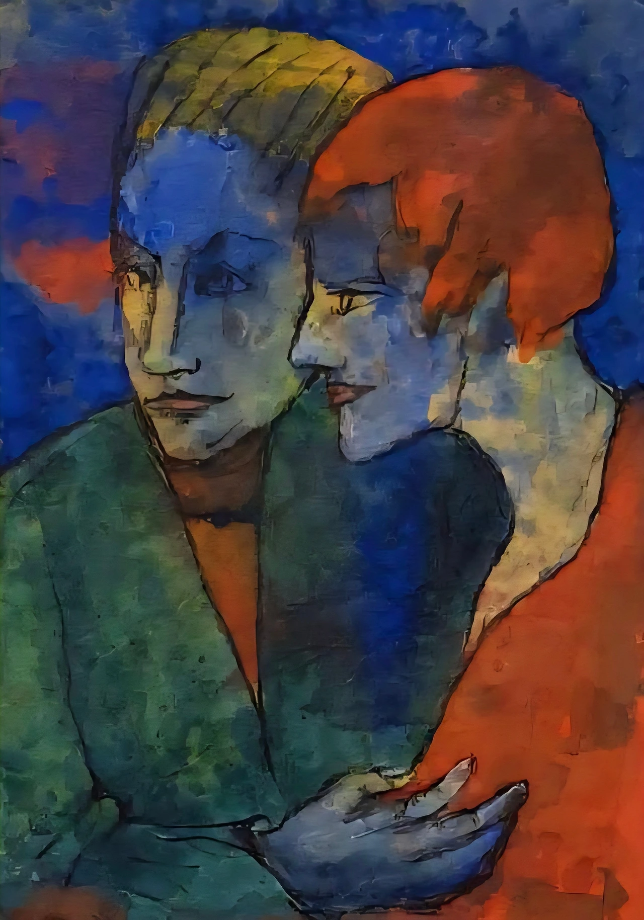 그림을 오래 들여다보면, 처음엔 선명하게 보이지 않던 감정들이 서서히, 마치 어두운 물속에서 떠오르듯 모습을 드러낸다. 사랑이라는 이름을 붙이지 않아도, 두 사람의 감정은 화면 너머로 번진다.