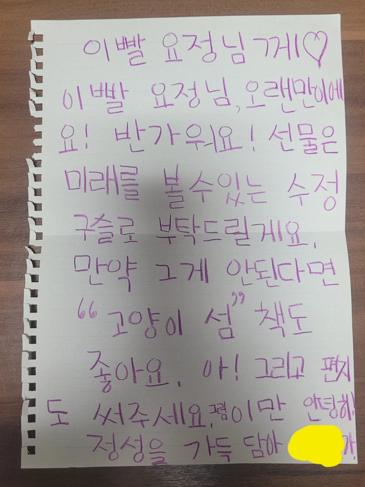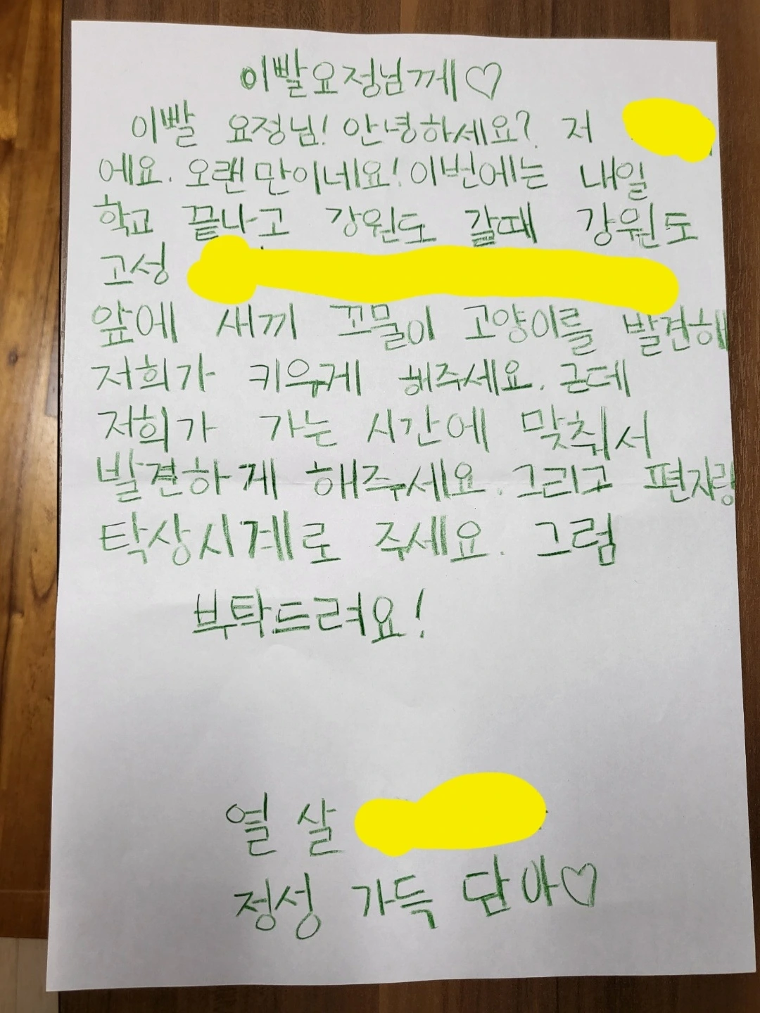 언젠가 이런 편지를 쓸 것만 같아서 걱정이 됐는데 그날이 오고야 말았다. (나중에 왜 그런 요청을 하면 안 되는지 설명해 주긴 했다)