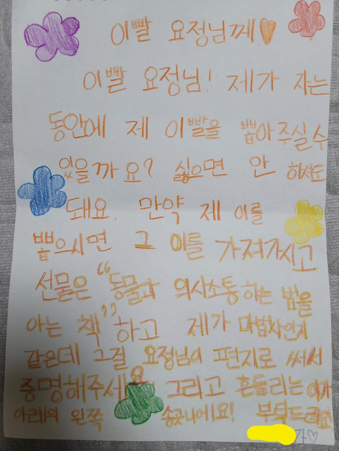 그래도 이빨요정이 끝까지 힘을 내서 찾아와 주면 좋겠다.