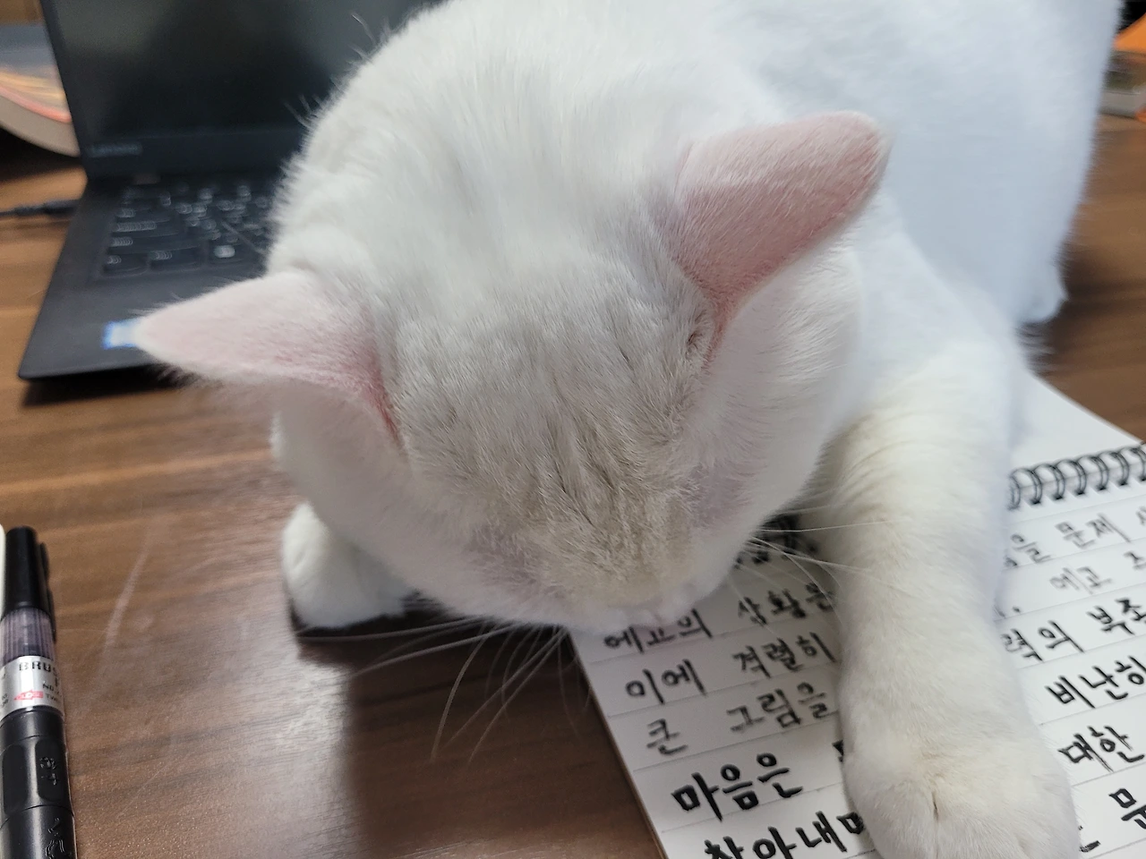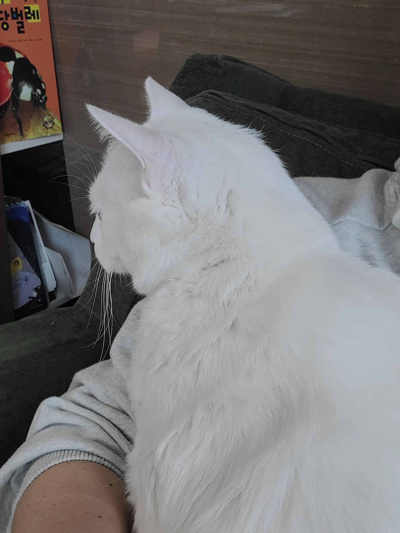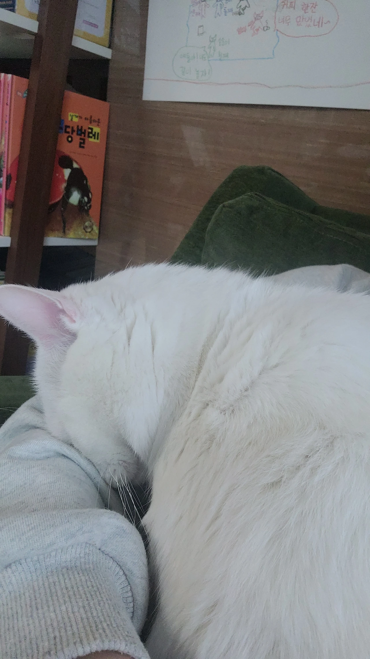 머리를 팔에 기대고 가만히 있길래 혹시나 움직이면