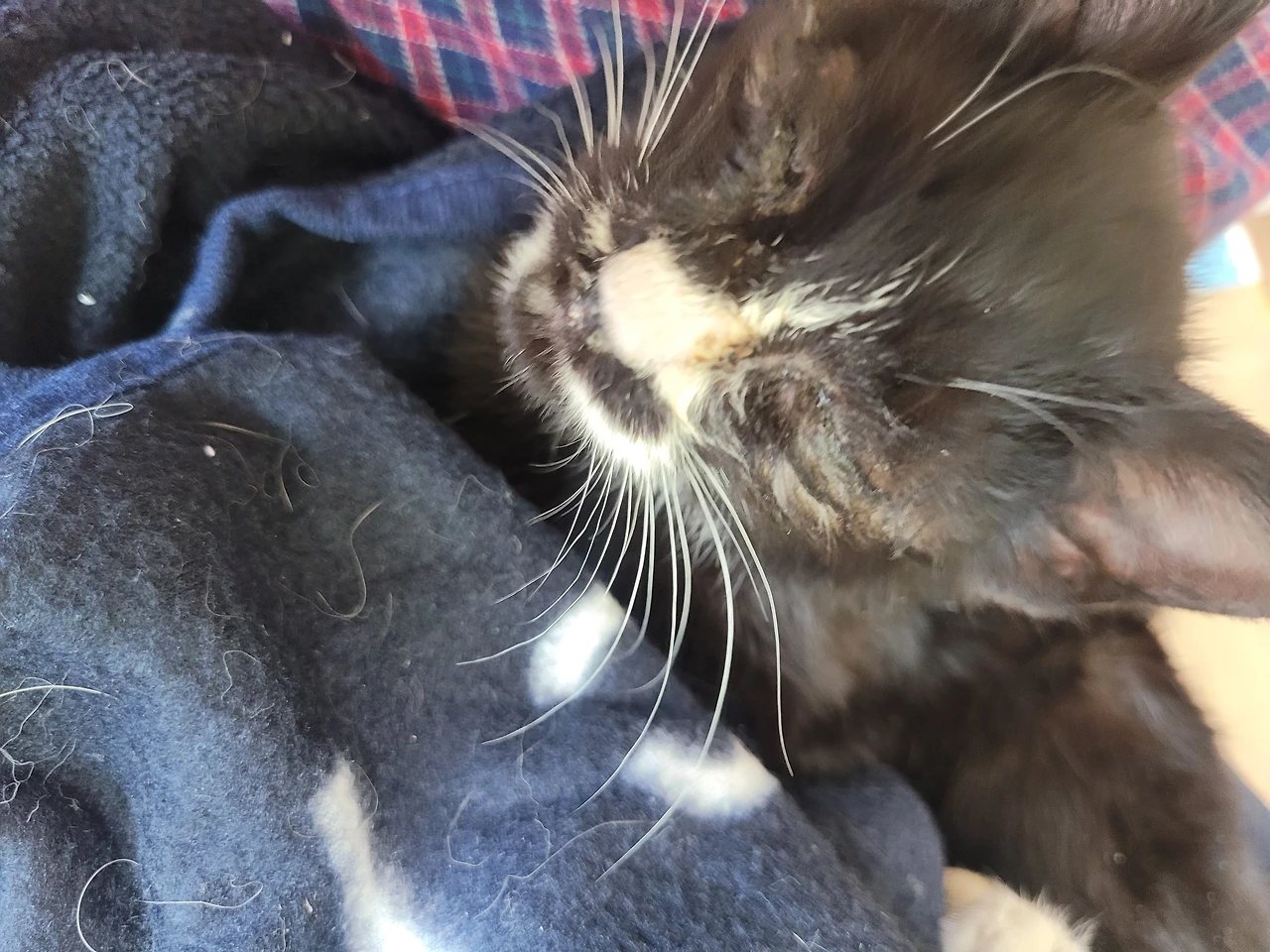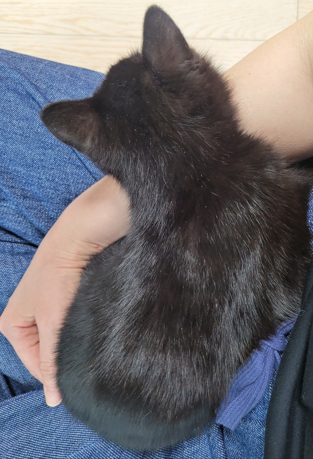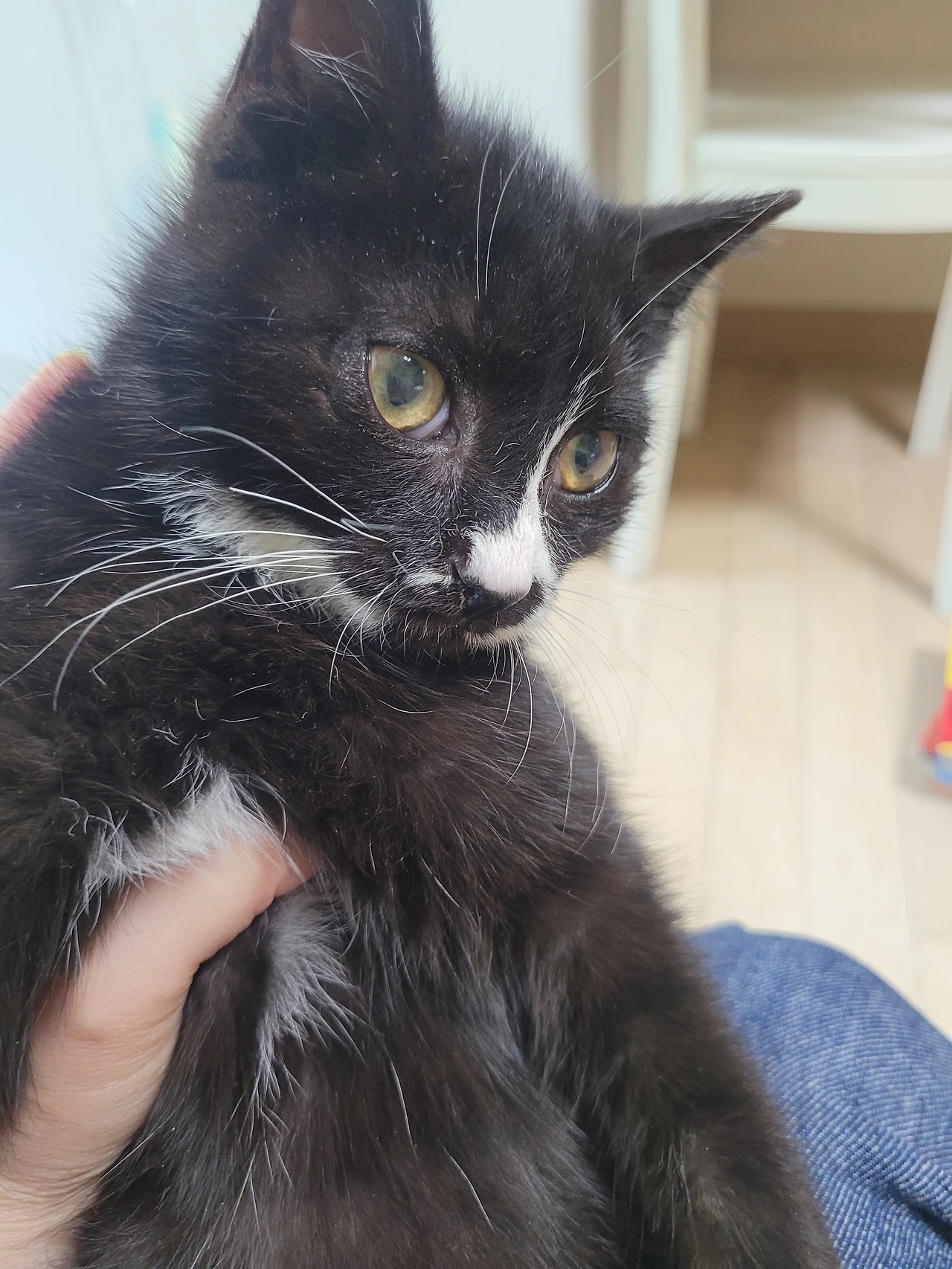 현재 삼사 개월령으로 추정되고 구조 당시 1kg이었는데 며칠 전에 1.5kg을 넘었습니다. 쓰다듬어주면 가만히 무릎에 안겨 엄청난 골골송을 부르는 귀염둥이예요.