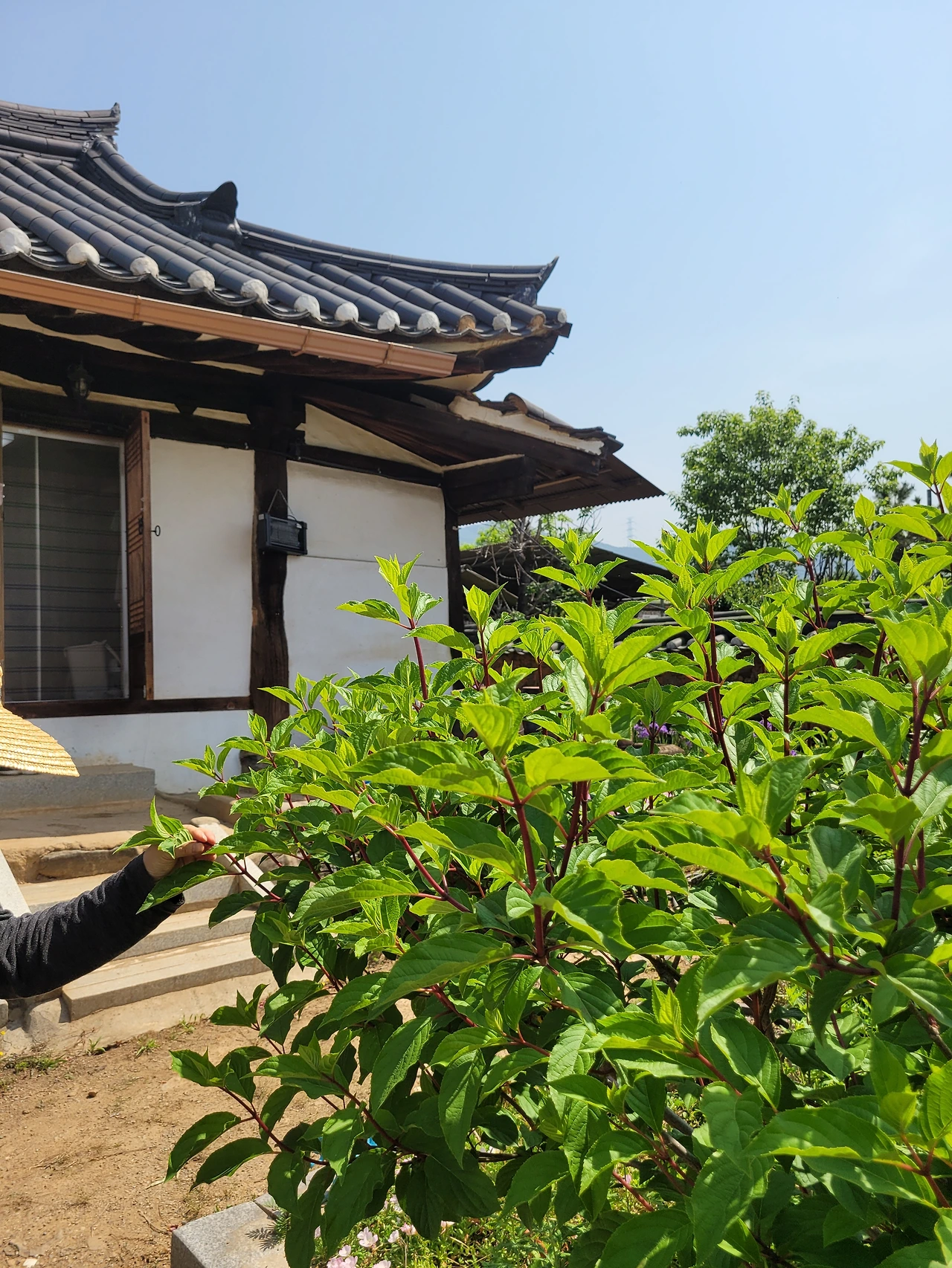 숙소 사장님께서 정원의 나무 한 그루와 여러 모종과 꽃대(?)를 Y님께 주셨다. 마당 있는 집 3년 만에 '식알못'에서 '식집사'로 거듭난 Y님은 이런저런 식물과 나무들로 자연스러운 한국식 정원을 가꾸고 계신 사장님과 말이 잘 통했다.