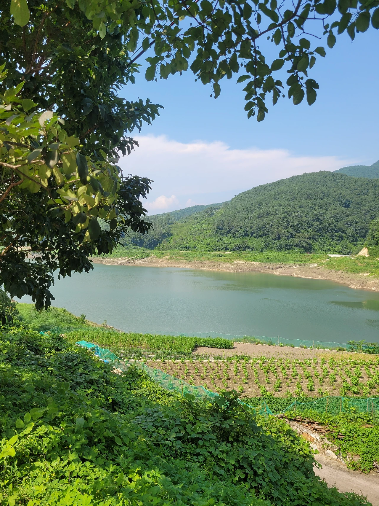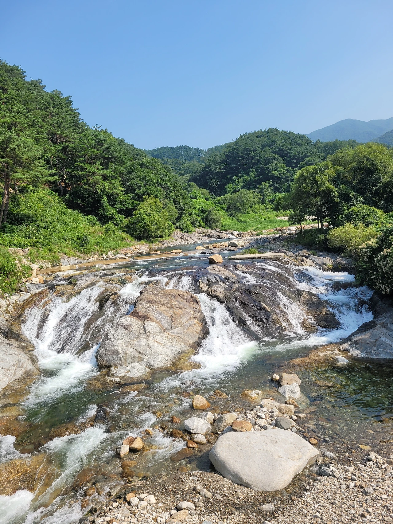 땡볕 구간을 채 다 지나지 못한 건데 산속 길로 접어들었으면 조금 나았을 것이다. 그래도 계곡과 나무 사이를 지날 때는 잠시 더위를 식힐 수 있었다.