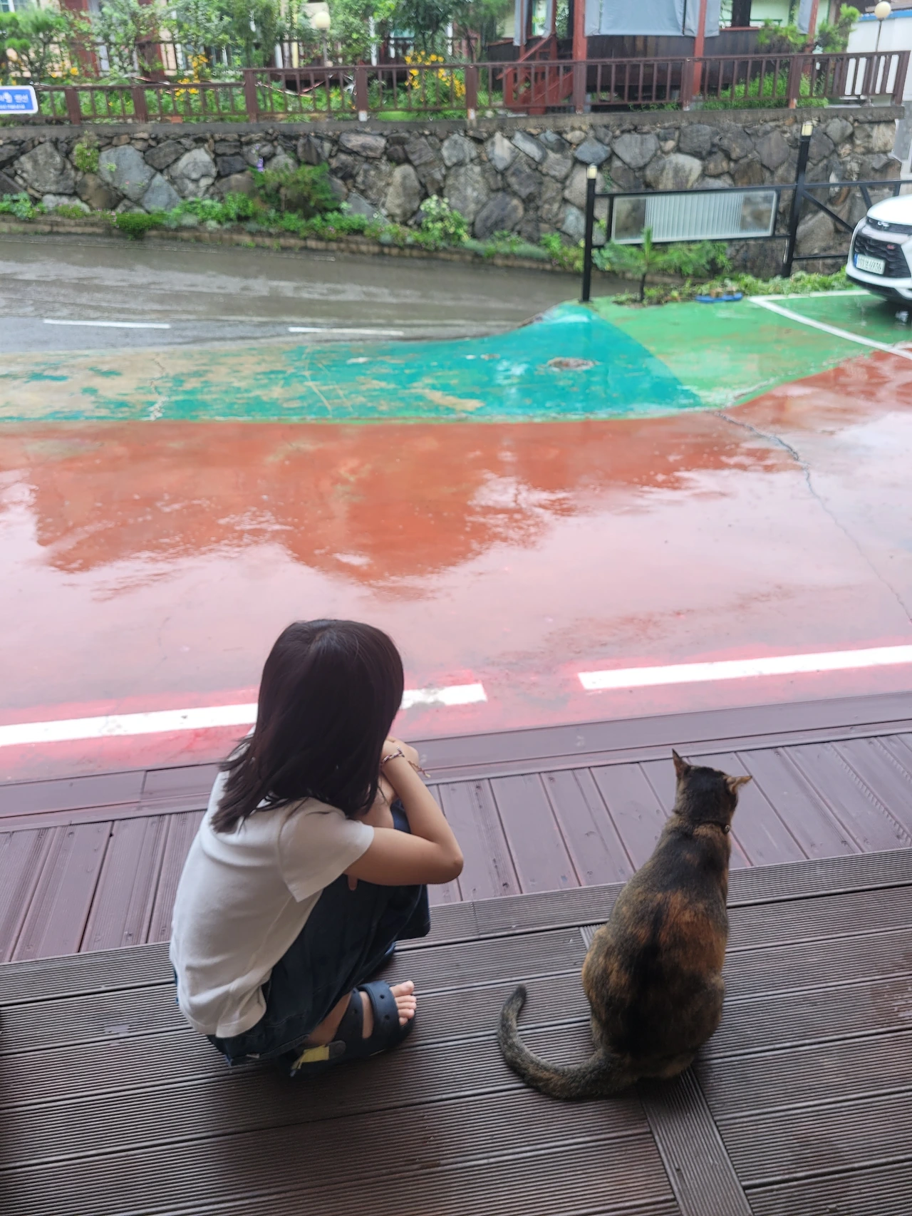 작년 이맘때는 고성 바다에서 몇 시간씩 놀던 아이인데 비가 오는 내내 숙소에서만 지내고 멀지 않은 여행지를 잠깐 둘러보는 지금이 어떤지 슬쩍 물어본다.