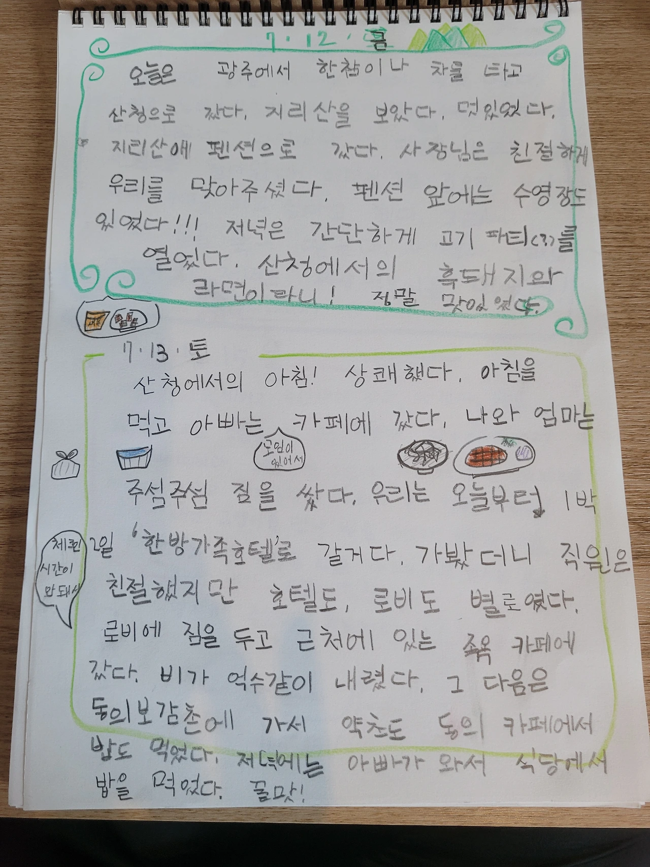 아이의 일기. 날짜를 잘못 써서 좀 뒤죽박죽이다