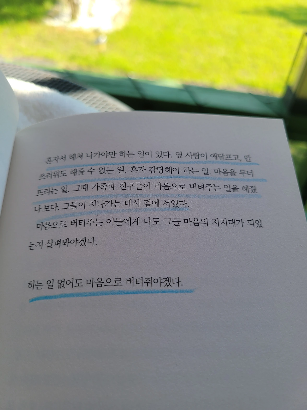 아쉬운 점은 생각보다 책을 못 읽고 있다는 것인데 산청에 있는 동안에는 매일 한 줄씩 짧게 읽는 책 말고 두 권 정도를 정독했다.