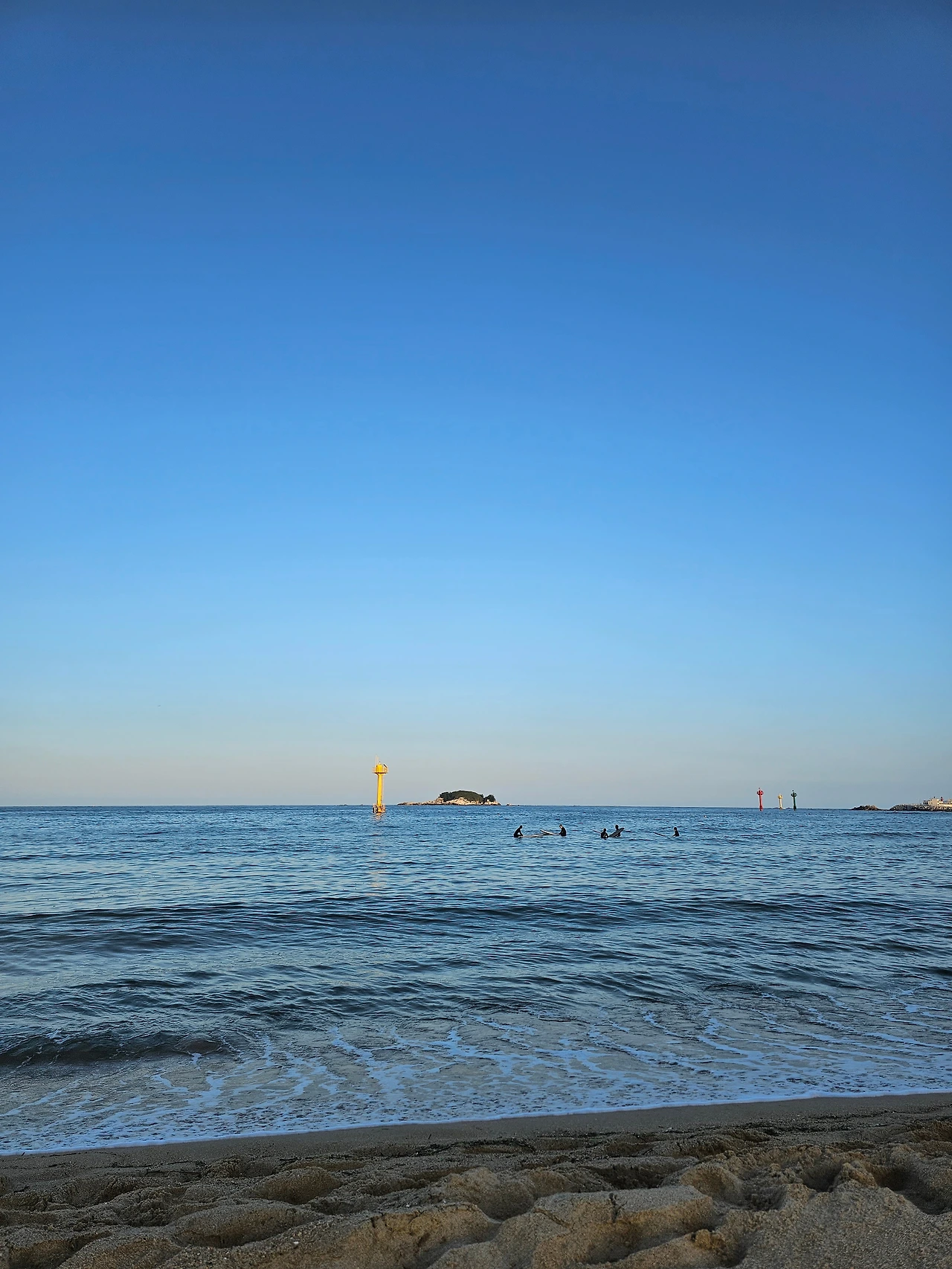 웻슈트를 입으면 춥지 않으니 서핑보드에 한 번이라도 올라가 보자 하는 가벼운 마음으로 강습 신청을 했다. 후배도 나도 폰을 사물함에 두고 온 데다 강습 사진을 찍어주는 곳은 아니라 단 한 장의 사진도 남지 않았다.