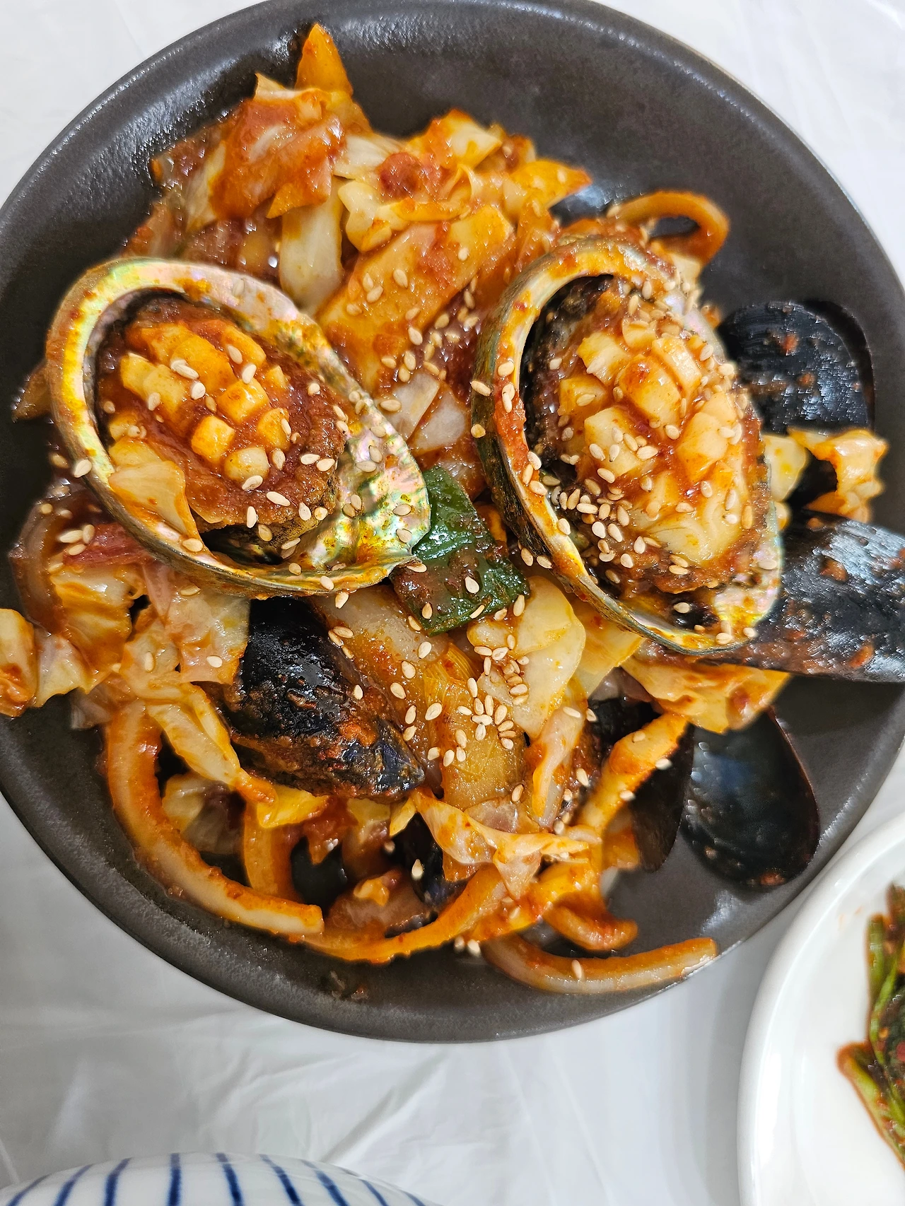 잠만 잔 첫날과 달리 본격적인 여행 이틀차, 12000원짜리 전복해물볶음과 카페에서 먹는 장보고빵과 바닐라라떼가 너무 맛있다.