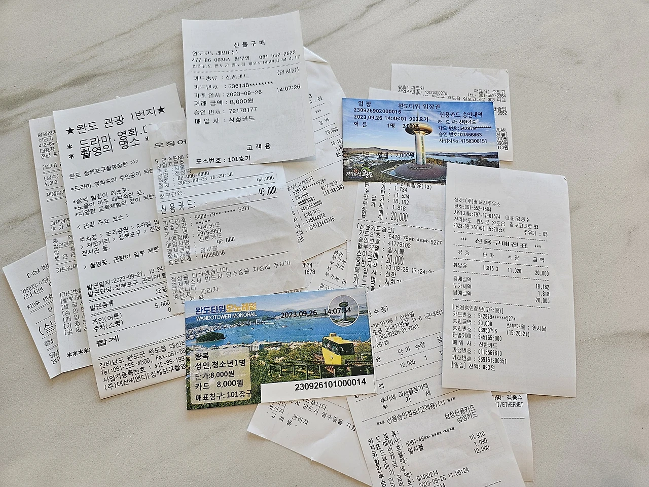 완도는 지자체 한달살기 보고서에 실물 영수증도 첨부해야 한다기에 혹시 영수증을 잃어버리거나 쌓아뒀다가 벼락치기를 해야 할까 봐 문구점에 갔다.