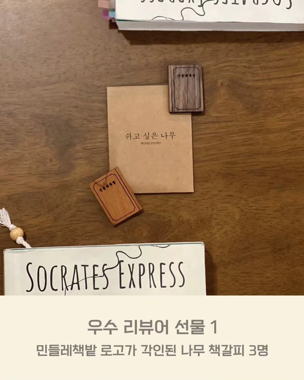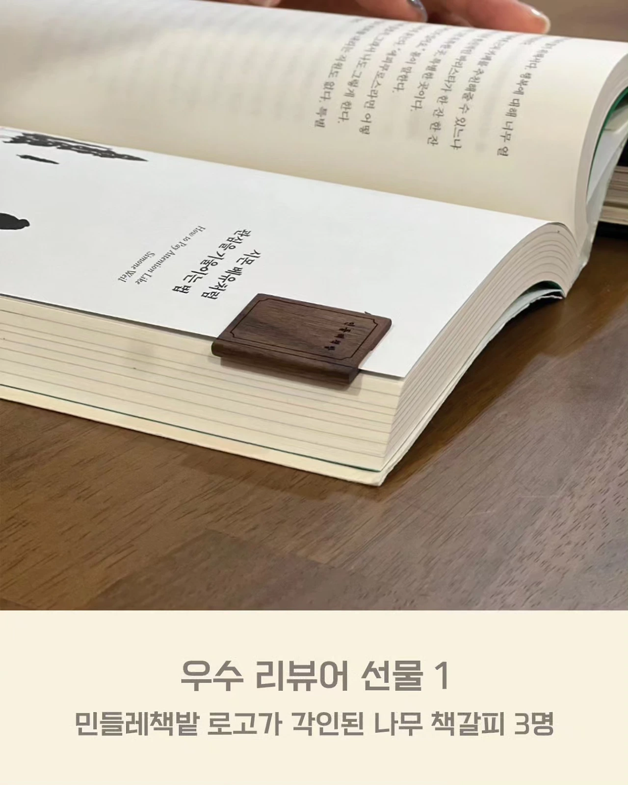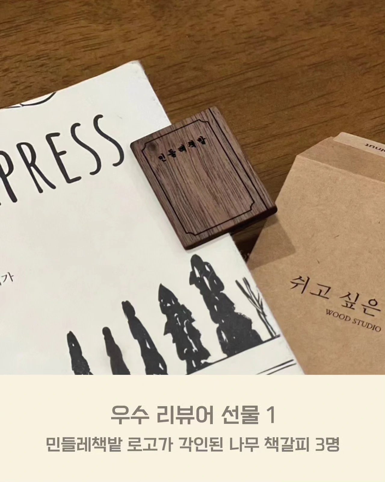 민들레책밭 사장님이자 작가님께서 직접 주문 제작한 책갈피를 구입해서 선물로 드립니다. 나무에 각인이 되어 작지만 멋스러운 9000원 상당의 책갈피입니다.