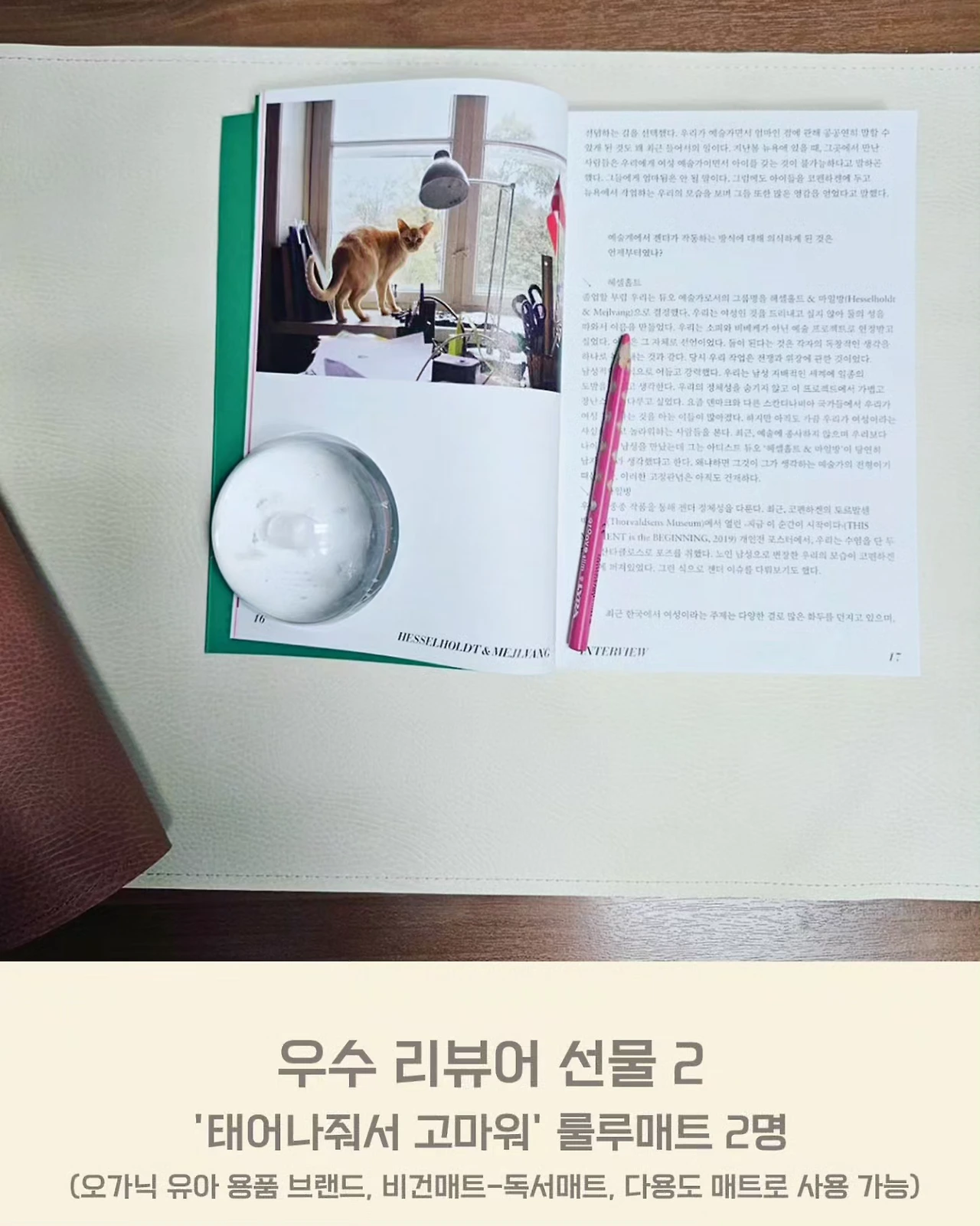 비건매트인 룰루매트는 독서매트로도 사용 가능하고 식사할 때 테이블 매트 등 다양하게 활용할 수 있습니다.
