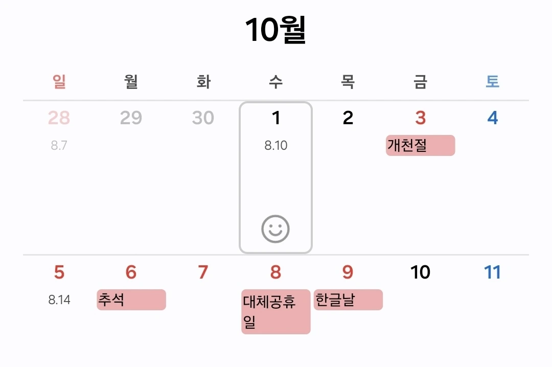 예전에 심심해서 캘린더 넘길 때 절대 오지 않을 것만 같던 마냥 좋을 것만 같던 엘도라도의 황금 같아 보였던 2025년의 연휴가 그게 올해였구나.
