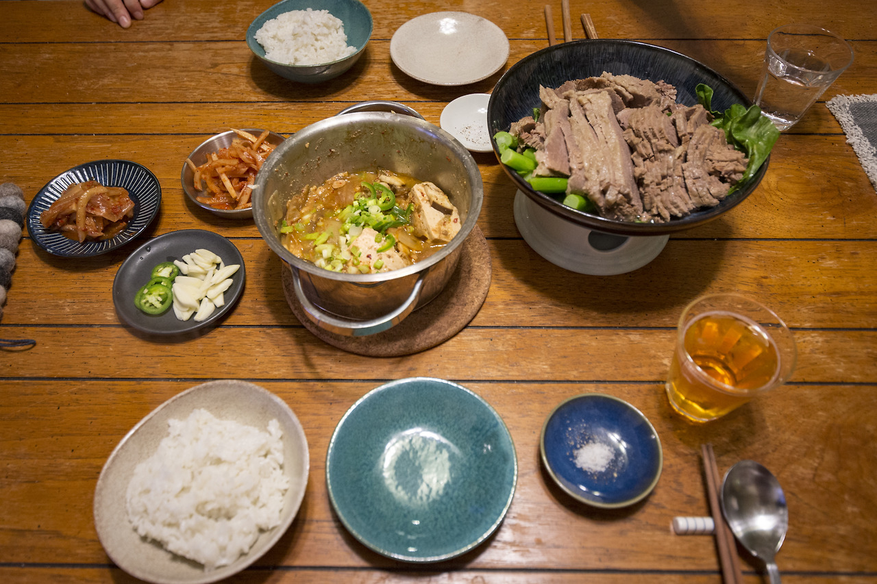 이를 다른 음식과 함께하는 것은 너무나 행복한 고문이었다. 커다란 양지를 사다 직접 썰어 만든 소수육.