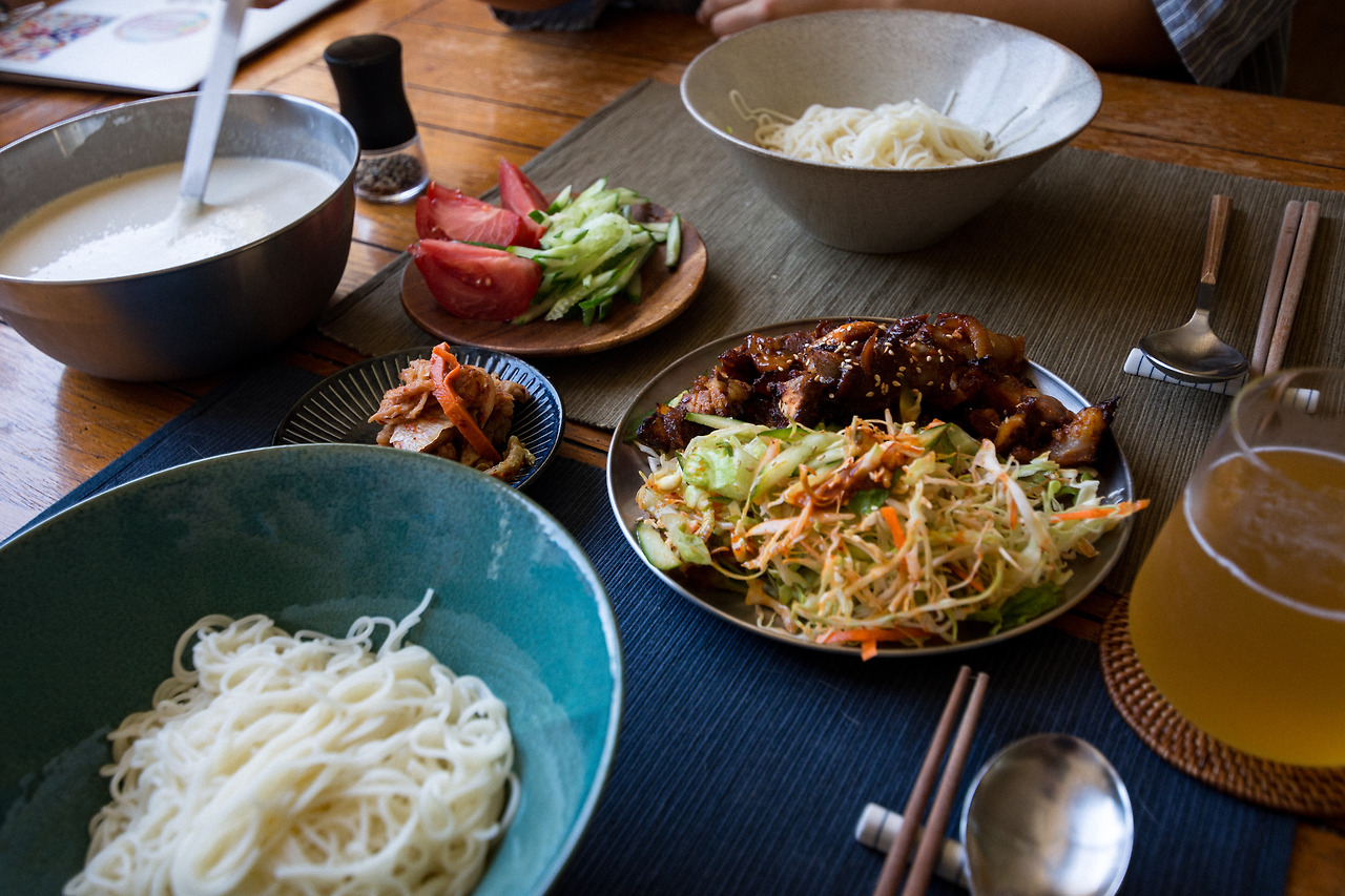 이게 왠걸, 이토록 맛있을 수가 없었다. 너무나 고소하고, 부드럽고, 시원하고, 국수와 국물이 끝도 없이 후루룩 넘어갔다. 거기에 잘 익은, 아내가 담근 김치. 이 참을 수 없는 맛있음에 정신없이, 아내보다 훨씬 일찍 한 그릇을 끝내 버렸다. 늘 그렇듯 아내는 자신의 그릇에서 한, 두 젓가락을 나에게 아낌없이 더 내어주었다. 나는 오이를 좋아하지 않지만, 아내가 건내준 콩국수에 배여있는 오이 향이 향긋했다.