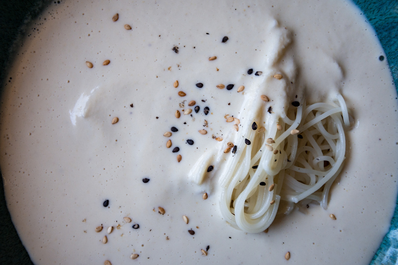 아, 그 진득한 질감, 고소한 맛. 깨가 올라가면 고소함이 배가된다. 그 시원한 국물과 함께 넘어가는 소면.
