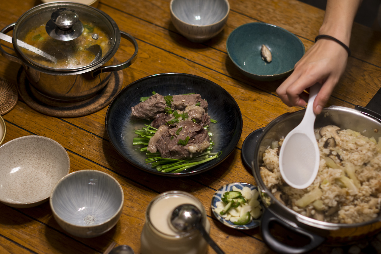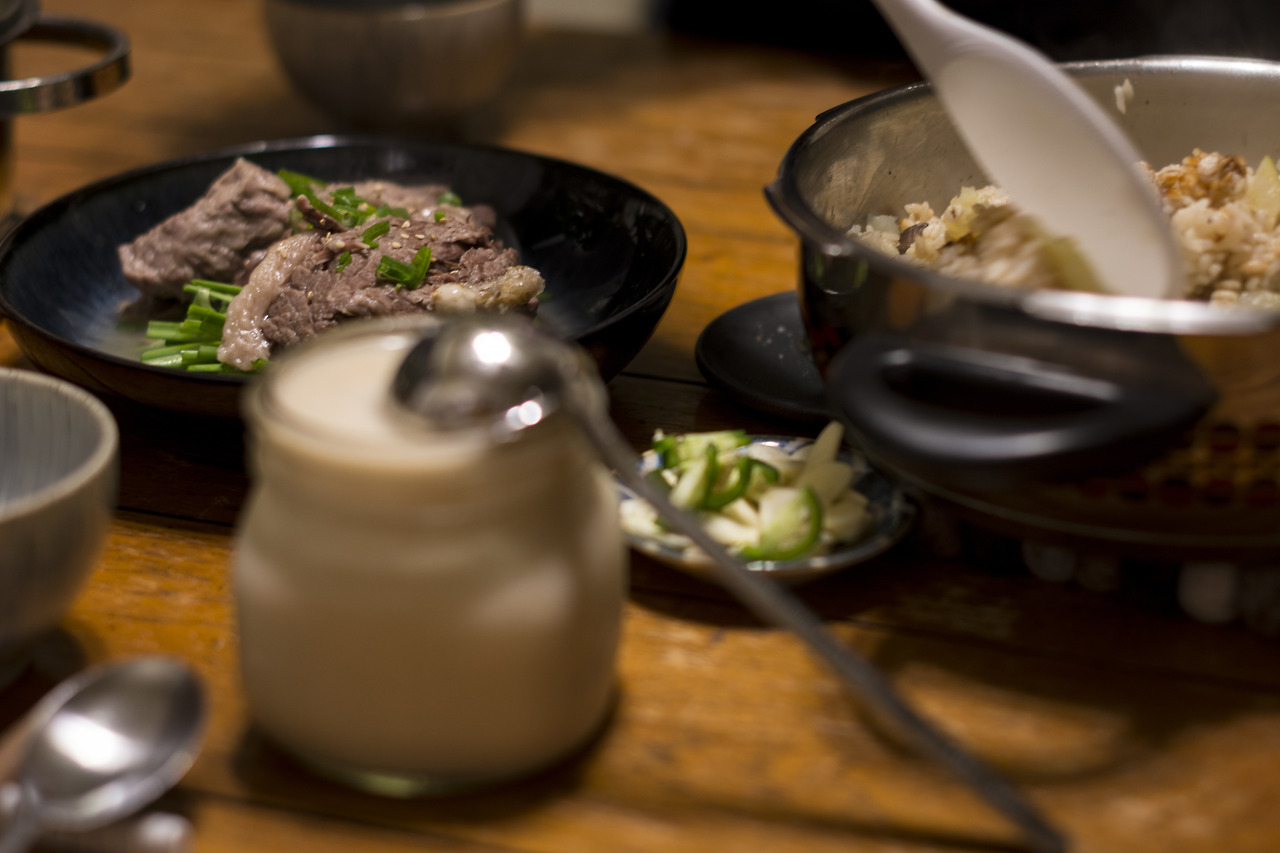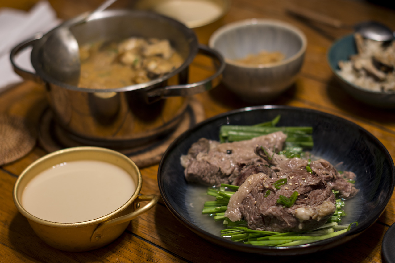 다음 날은 아주 본격적이었다. 차돌박이 로스구이, 그리고 집에서 만든 청국장.