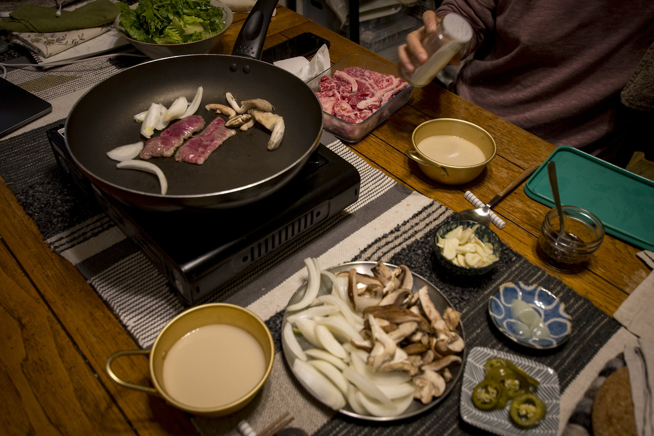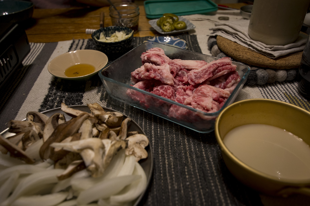 또 신나게 구워먹은 차돌박이. 집에서 양조해 낸 막걸리와 함께하니 더 바랄 것이 없다.