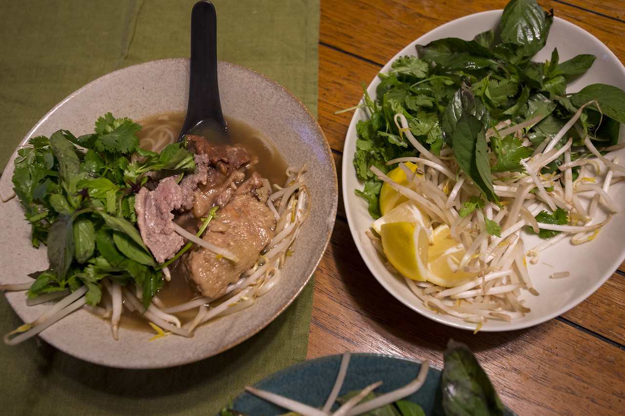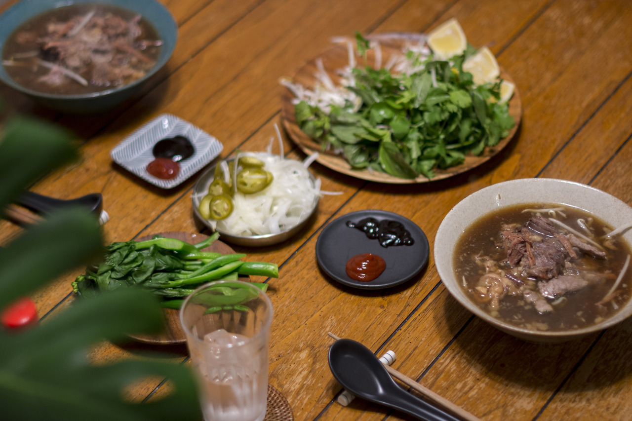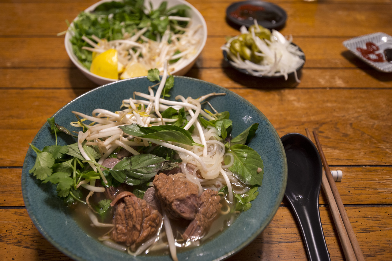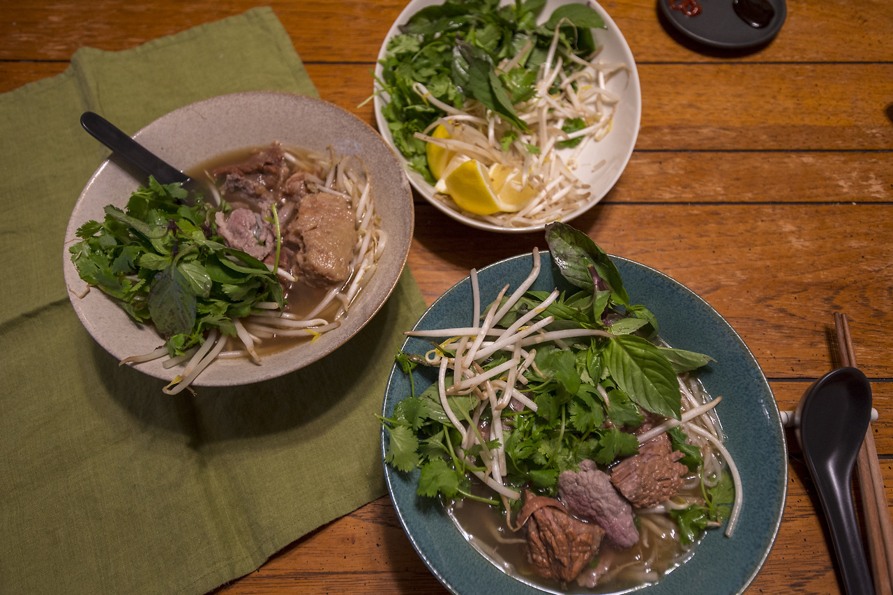 이 다음은 포 보(소고기 쌀국수). 양지를 아주 오래 팔각, 후추 등등 별의별 향신료와 함께 고아내어, 숙주, 고수, 타이바질, 레몬 등을 얹어 먹었다. 포는 언제부턴가 우리에게 힐링 음식이다. 쌀쌀한 날 몸이 너무나 더워지게 만들어 주는 음식. 더 이상 사 먹을 이유가 없어진 음식이다.