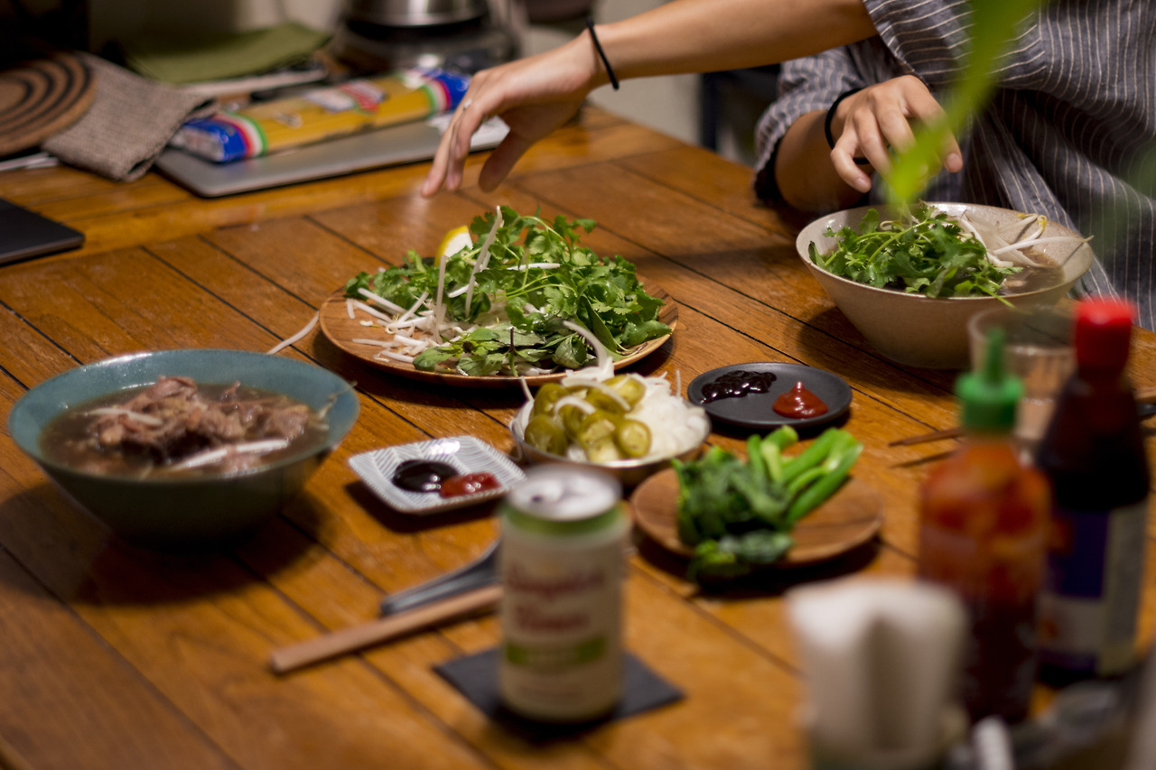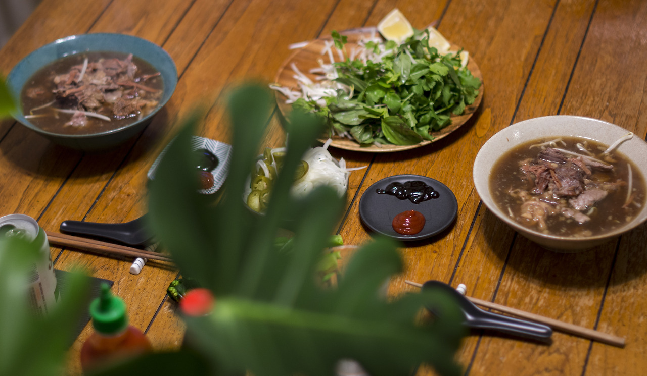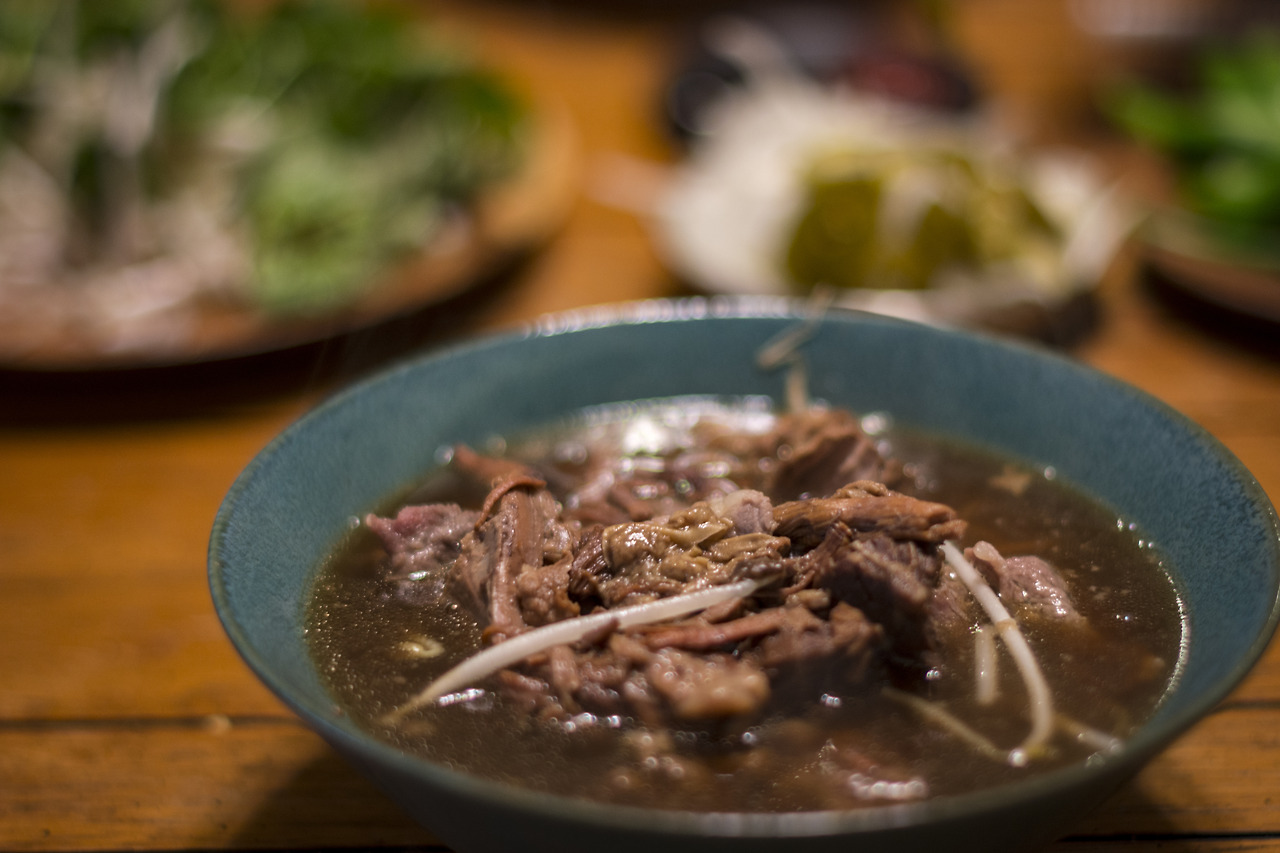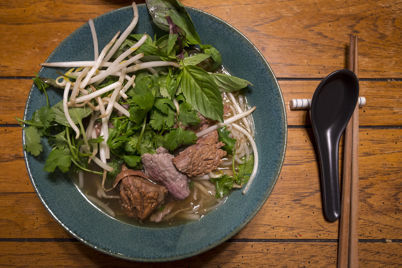이 다음은 포 보(소고기 쌀국수). 양지를 아주 오래 팔각, 후추 등등 별의별 향신료와 함께 고아내어, 숙주, 고수, 타이바질, 레몬 등을 얹어 먹었다. 포는 언제부턴가 우리에게 힐링 음식이다. 쌀쌀한 날 몸이 너무나 더워지게 만들어 주는 음식. 더 이상 사 먹을 이유가 없어진 음식이다.