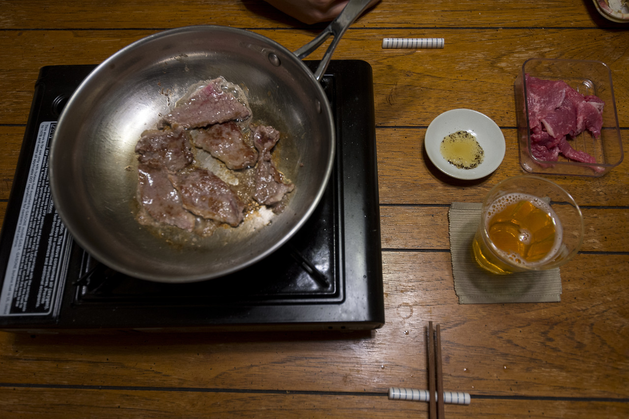 이것이 실행된 것은 한 밤중. 냉장고에 다시 넣는 것 조차 아까워, 자정에 가까운 시각이었으나 조금만 바로 구워 먹기로 했다. 경건하고 거룩한 경험이었다.