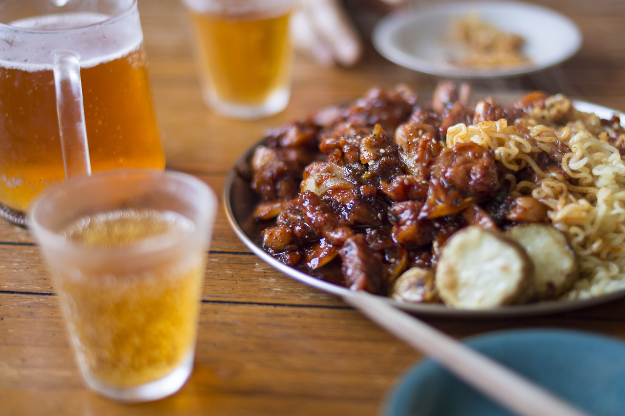 십년 전 쯤 우리가 데이트를 때엔 이러한 호프 집에서 간단한 메뉴를 시키고 끝없이 맥주를 마셨다. 크래프트 비어는 꿈에도 없던 시절, 물 탄 오비 맥주, 그 시원한 맛만으로 그렇게 끝없이 들이켰더랬다. 어느 날 밤은 끝없는 이야기와 수다를 안주 삼아, 둘이서 자그마치 10,000ml, 10L의 맥주를 비워냈다. 표면장력을 최대한 이용하여 사랑하는 만큼 붇느니, 넘치면 사랑을 어찌 흘리냐며 실망이라던지, 별 시덥잖은 것들로 깔깔거리며 지냈던 시절은 아직도 계속되어 우리는 여전히 사랑하며 지내고 있다. 아무래도 둘이 같이 하는 일상은 행복하다.