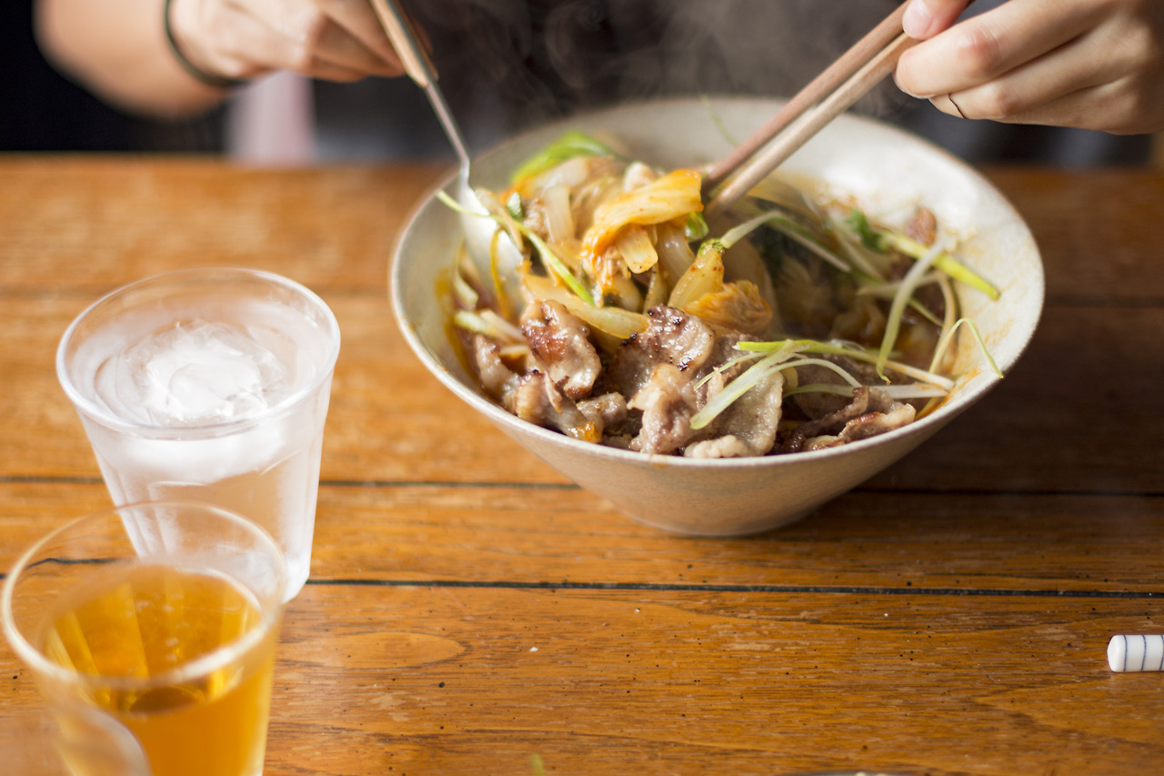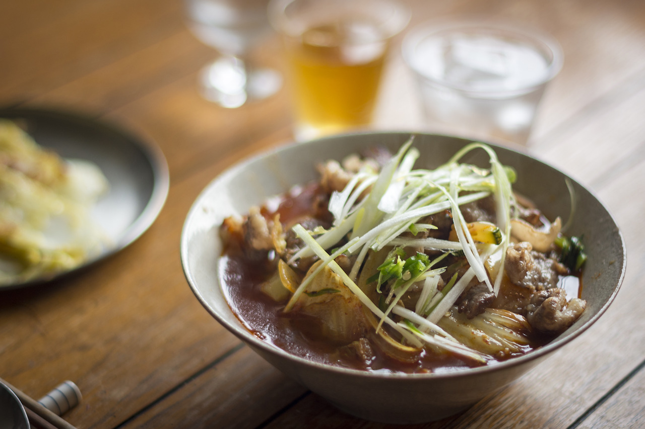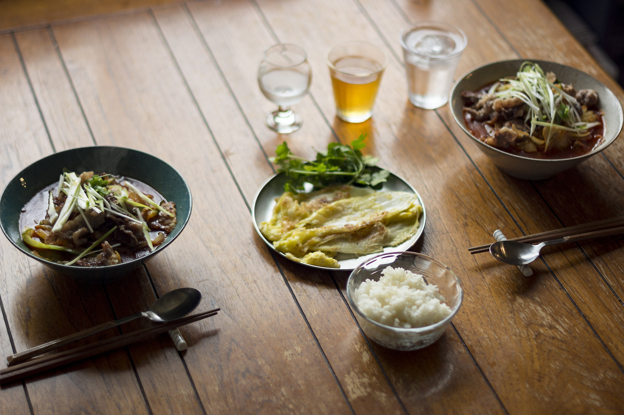 흐린 날, 마음 깊은 곳까지 불을 지펴주는 얼큰한 짬뽕. 매끄러운 면발, 부드럽게 녹아내리는 고기, 국물 한껏 머금은, 하지만 아삭함이 남아있는 청경채, 달콤한 양파, 향을 돋우는 파채.