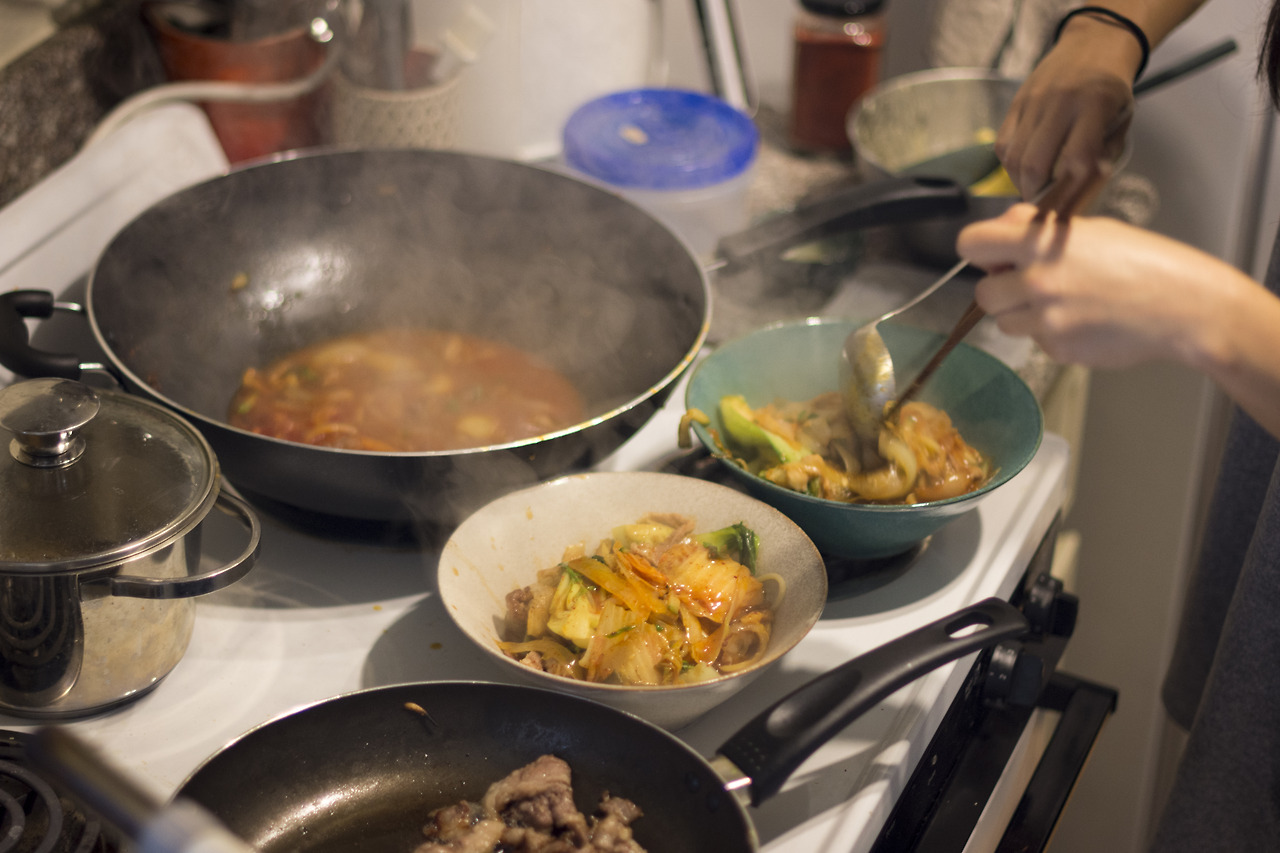 아내도 나도 미국에 머무르며 짬뽕을 먹어본 적이 없었다. 아내는 짬뽕을 먹기 위해서라도 한국에 들어가야겠다고 누누이 이야기하였고, 실제로 그가 한국에 갈 때면 꼭 '차돌 짬뽕'을 먹고선 그렇게 맛있다고 나에게 이야기해 주었다. 그러다 최근 코스트코 양지 덩어리 끝에 붙은 차돌박이를 직접 썰어먹는 일상이 시작되고 얼마 지나지 않아 아내는 차돌 짬뽕을 만들어 먹겠노라고 선언하였다. 그 덕에 나는 거의 10년 만에 짬뽕을 먹게 되었다. 불향 가득한 얼큰함과 매콤함은 기본이고, 소기름의 진한 단맛, 그리고 해산물 대신 내가 아주 좋아하는 차돌박이가 한껏 담긴 짬뽕을.
