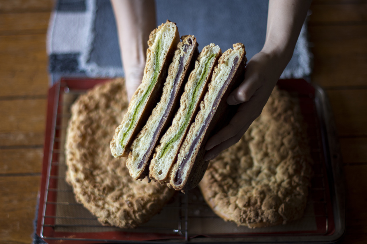 아내는 전날부터 한참 준비해서 한 쪽은 팥 앙금, 한 쪽은 완두 앙금을 채워 넣었다. 어릴 때 완두콩을 싫어했던 기억이 있어서 시도해보기가 조금 두려웠으나, 먹어보니 팥과 또 다른 살짝 짭짤하고 고소한 맛이 좋았다. 그리고 색깔 대비가 예뻐서 눈이 즐거웠다.