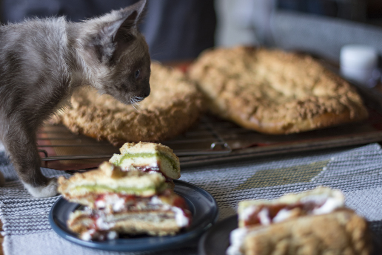 맘모스빵 구경온 올리. 맘모스빵의 크기는 올리보다 월등히 컸거나 적어도 그런 느낌이다. 소보로의 고소한 맛, 적당히 밀도 높은 빵의 식감, 팥과 완두 앙금의 달콤하고 고소한 맛, 그리고 맛있을 수밖에 없는 크림과 잼의 조화. 추억의 맛이라고 하기엔 클래시컬하게 언제나 먹어도 맛있을 수밖에 없는 조합이었고, 칼로리는 어마어마하겠으나 새삼 그게 뭐 어떤가 싶었다.