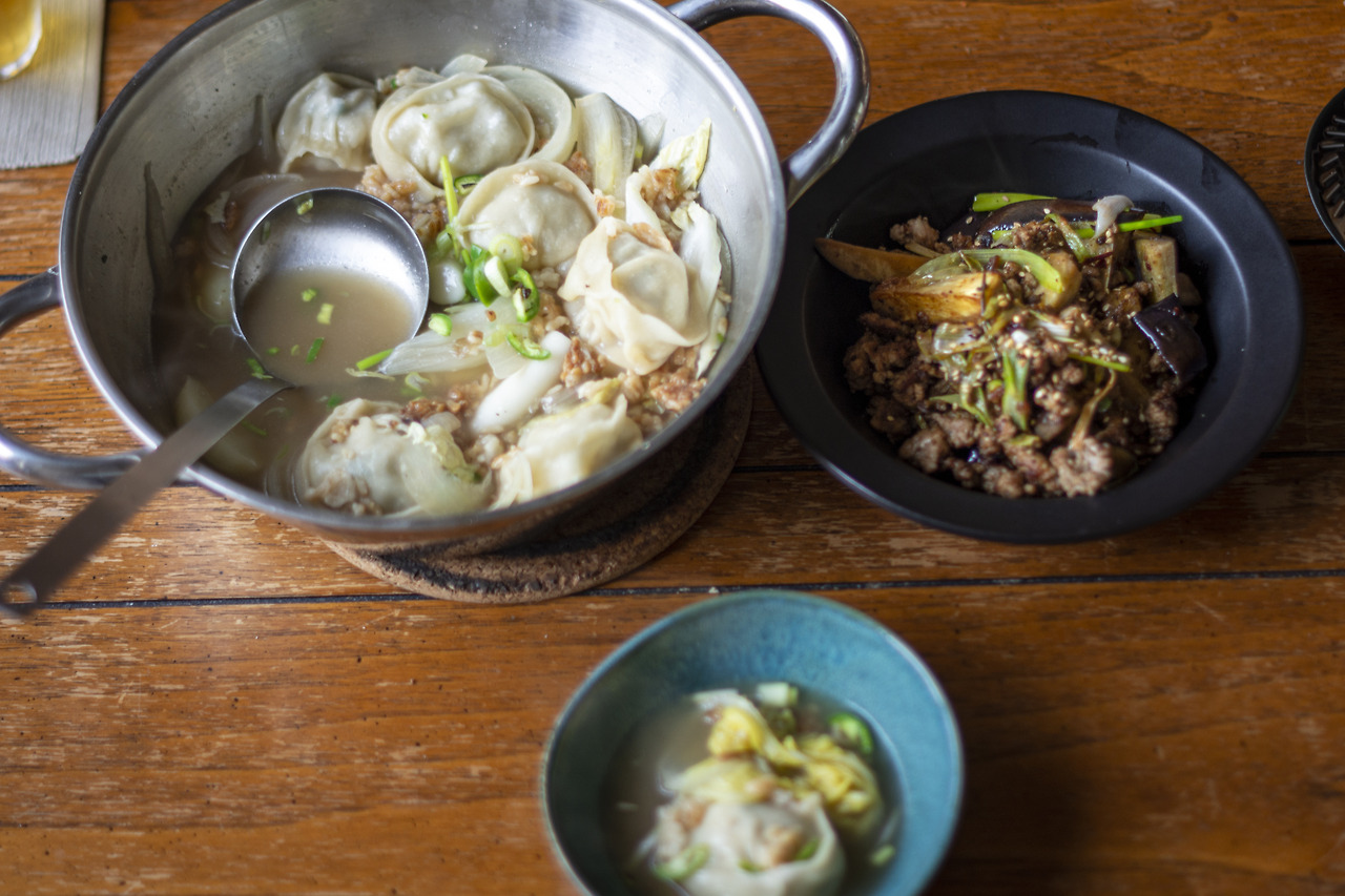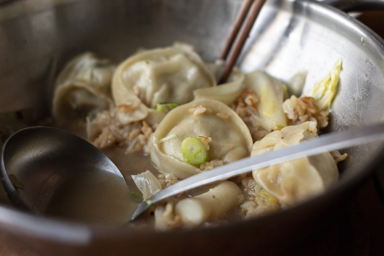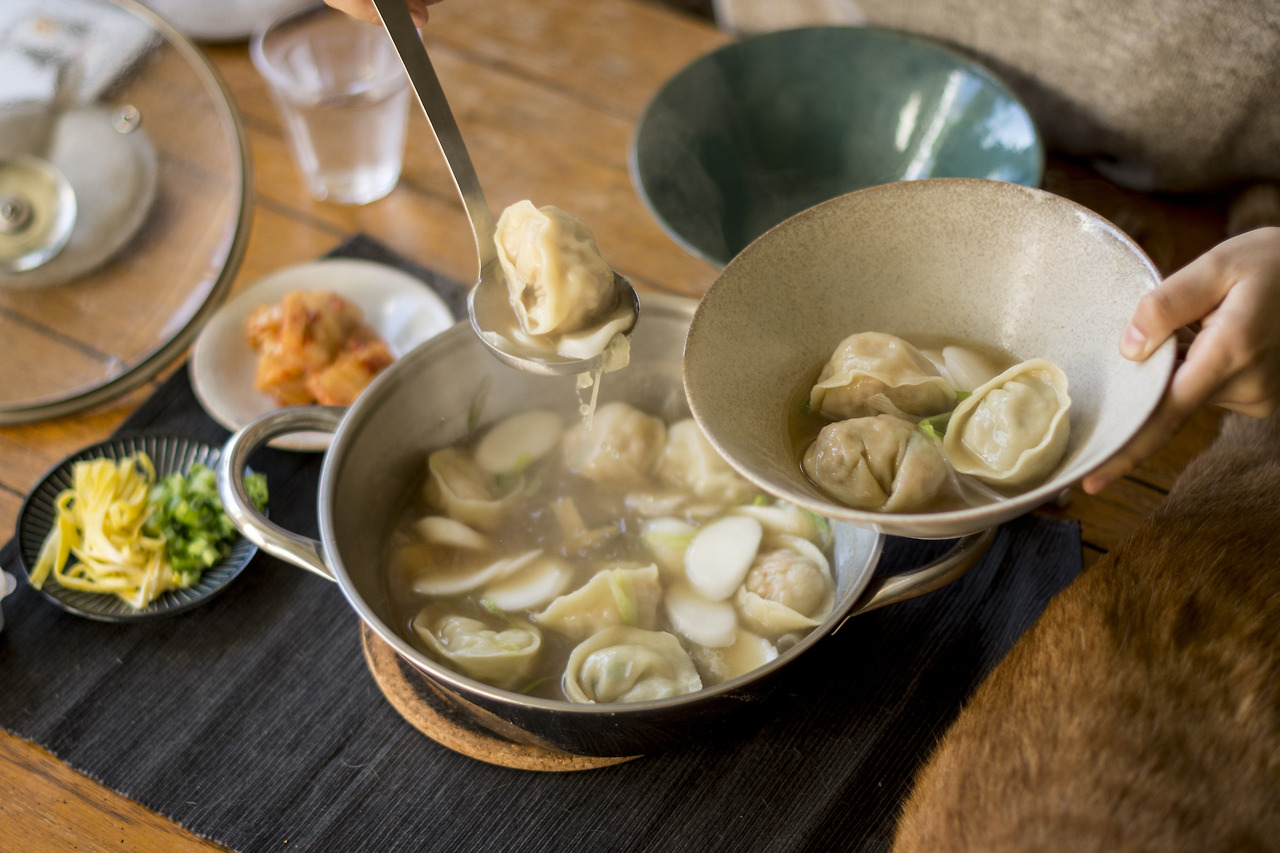 특별하게 여기기는 하지만, 우리도 만두를 종종 사이드처럼 사용한다. 주로 샤브샤브와 같은 다양한 재료를 끓이며 먹는 국물 요리에 만두를 넣곤 하는데, 국물에 들어간 만두는 언제나 별미이다. 너무나 뜨거워서 입천장이 까짐에도 국물이 한껏 배인 감칠맛 덩어리를 베어 물 수밖에 없다.