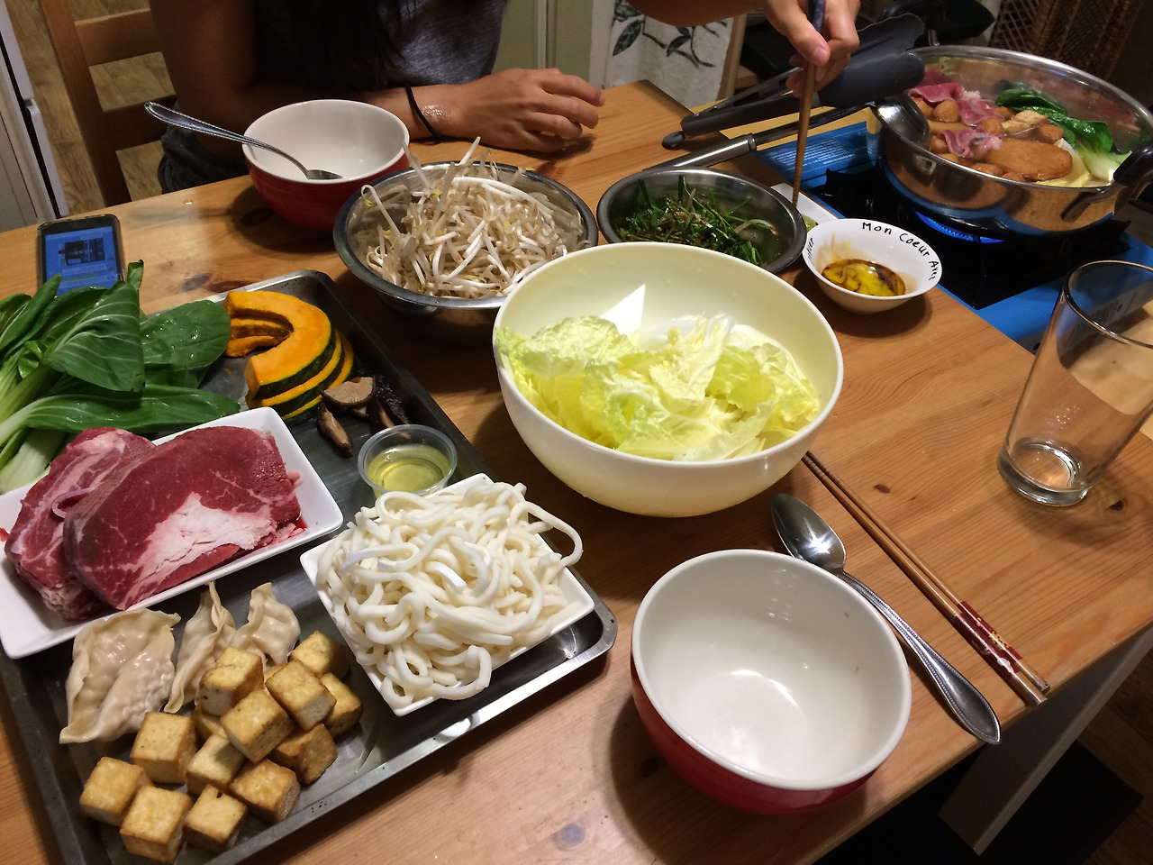 배가 고픈 것 같지도 않았는데, 뭉근한 육수 냄새에 갑자기 허기가 진다. 별개로 가지와 고기가 볶아지는 달달한 냄새도 난다. 아내가 '아, 좋은 게 있다!' 라며 냉장고를 들여다보더니 '마라!' 하며 얼마 전 만들어 둔 마라장을 꺼내 같이 볶아낸다. 크, 퍼지는 중국스런 냄새에 침이 고인다. 아픔에 사진 찍을 생각도 못하다가 아무리 그래도 이 저녁상이 너무 맛있어 보이고 소중해서 뷰파인더도 보지 못하고 셔터를 눌렀다.
