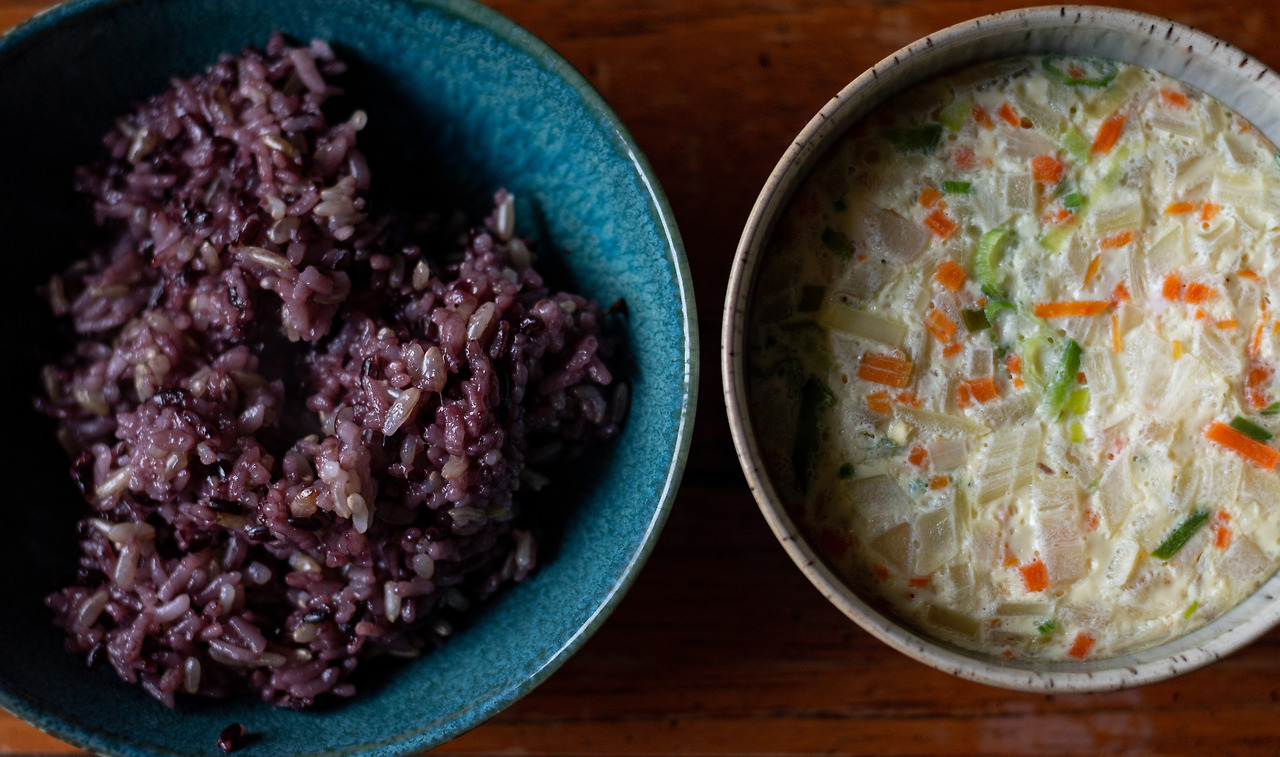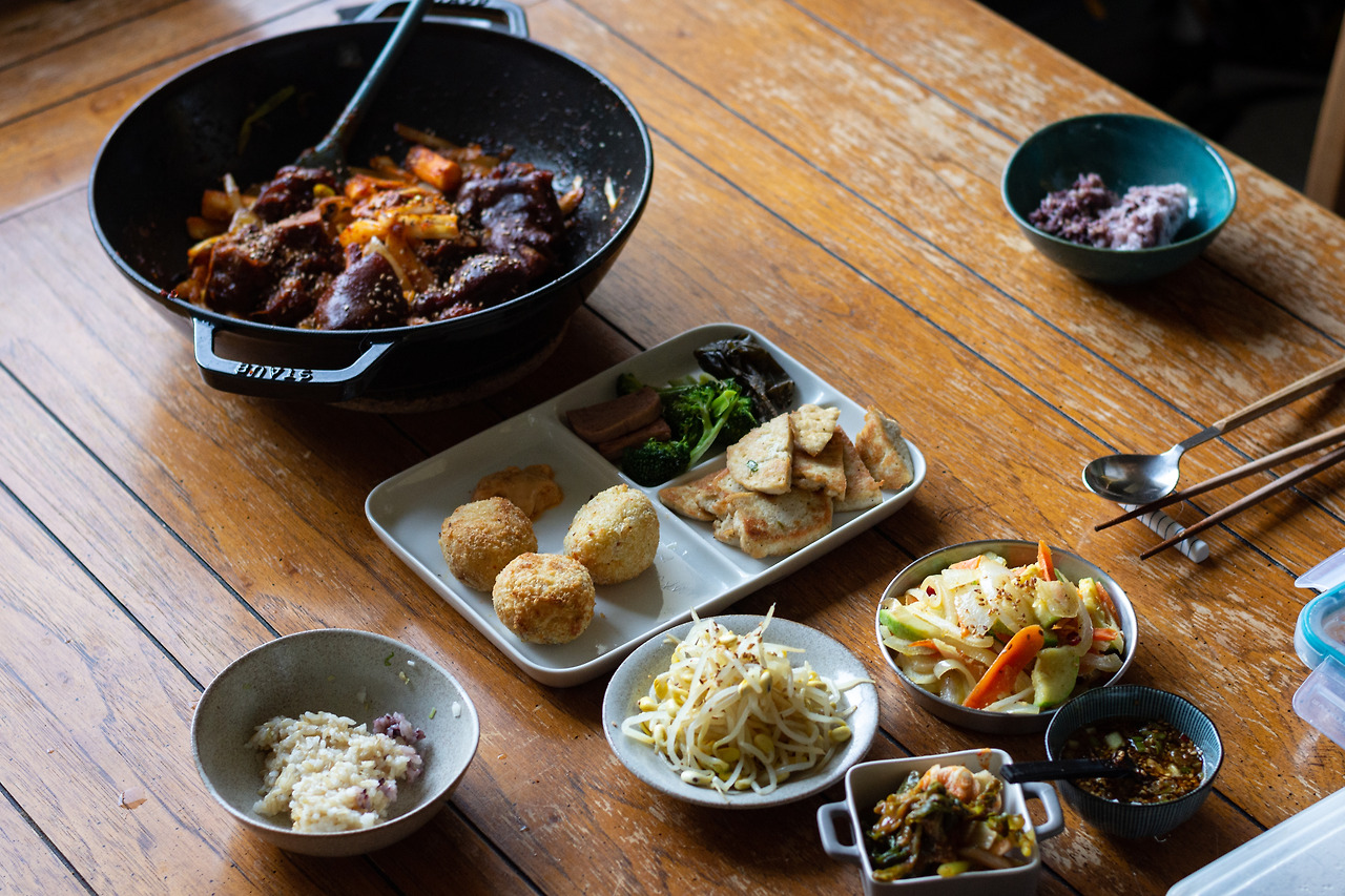 이 저녁 상의 메인은 족발도, 고로케도 아니고, 두부 비빔밥이라고 했다. 뭔가 싶었는데, 흑미, 현미밥에 부친 손두부를 잘 으깨 담고, 콩나물과 야채볶음을 얹은 후, 간장 양념을 더해 열무김치로 마무리하니, 왜 비빔밥이 한국인의 음식인가 이제야 이해할 수 있었다. 고로케와 족발은 사이드가 되었다. 물론 너무나 맛있었다.