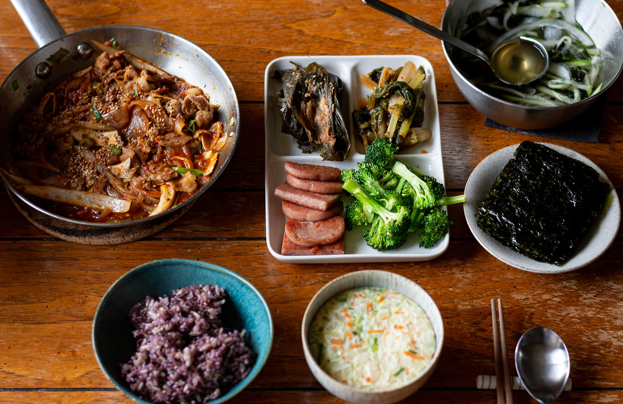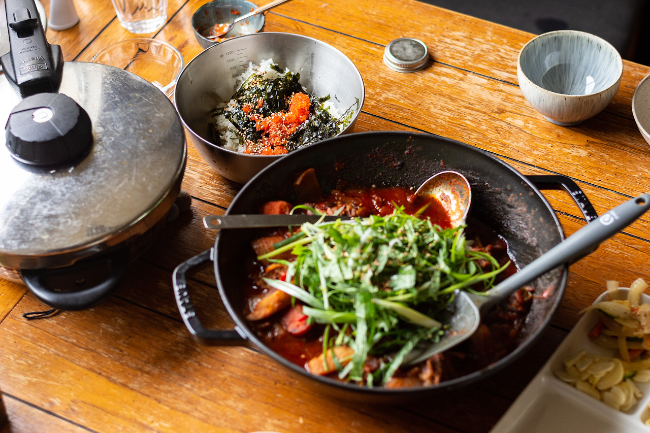 어릴 때는 죽어도 싫던 냉국의 오이의 향이 점점 익숙해지고 가끔은 향긋하게 느껴진다. 아내의 계란찜은 진한 다시마 육수로 아주 섬세하게 쪄져서, 편안하게 감기는 감칠맛과 폭신하고 매끄러운 계란의 질감, 그리고 향긋한 야채의 향이 아주 돋보였다. 매콤한 두루치기야, 어찌 안 좋아하고 배길 수 있을까. 열무김치의 산뜻한 매콤함은 계속 감탄을 내뱉게 한다.