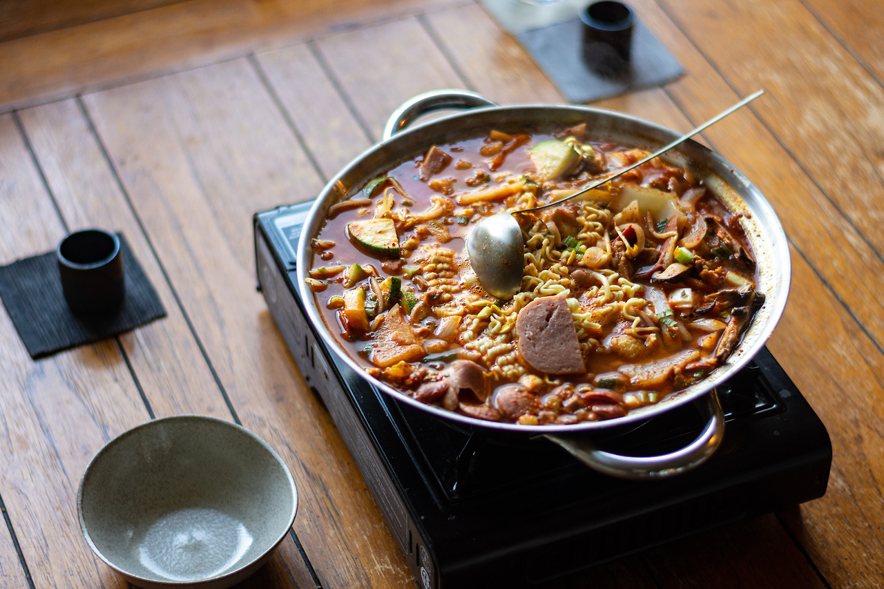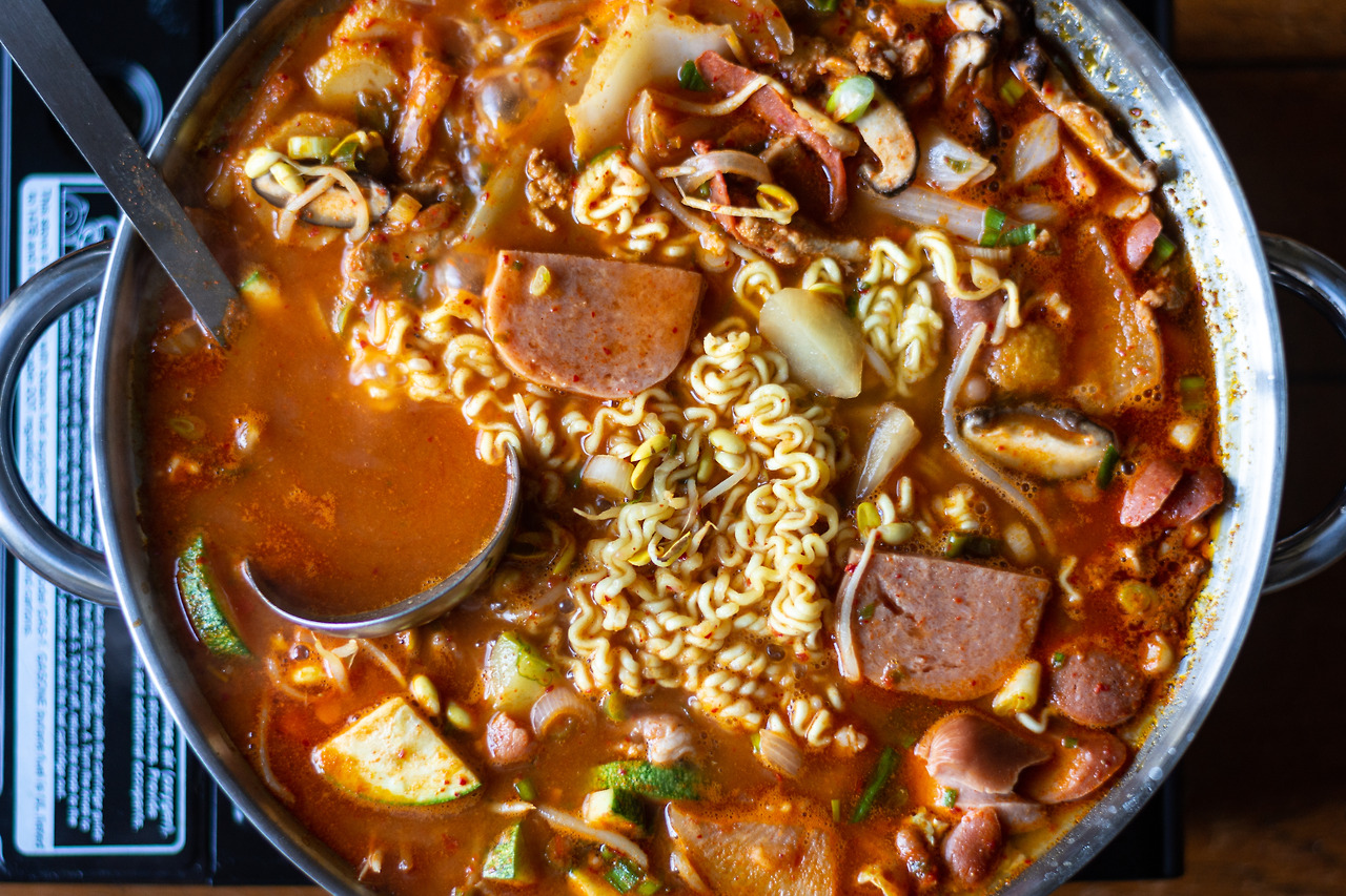 소세지나 스팸같이 전 세계 누구에게나 제법 친숙하며 직관적이고 자극적인 맛이 나는 가공육, 익숙한 야채. 매콤하긴 하지만 그래도 터무니없지 않게 맵지 않은 얼큰한 국물, 그리고 탄수화물에 탄수화물을 얹는 민족답게 그 국물에 밥을 비비고, 한국의 색을 뽀얗게 담고 있는 쫄깃쫄깃한 떡을 더하고, 거기에 라면 사리를 얹는다. 애초에 주한 미군부대에 공급되었다 남겨진 가공육을 끓여 만들어진 요리라고 하지 않는가. 그러한 한국의 역사까지 담고 있는 요리이니 아주 훌륭한 한식이라고 생각한다. 게임 해설가 울프 슈레더가 '대한미국놈'으로 자신을 칭할 정도가 된 데엔 부대찌개가 한 반쯤은 영향을 미치지 않았나 하는 생각이 든다. 미국에서 일본이나 중국식 '핫팟'이 아주 큰 인기인데, 나는 부대찌개도 당당하게 자리 잡을 수 있다고 늘 생각한다. '북창동' 순두부찌개가 유명해진 것처럼 말이다.