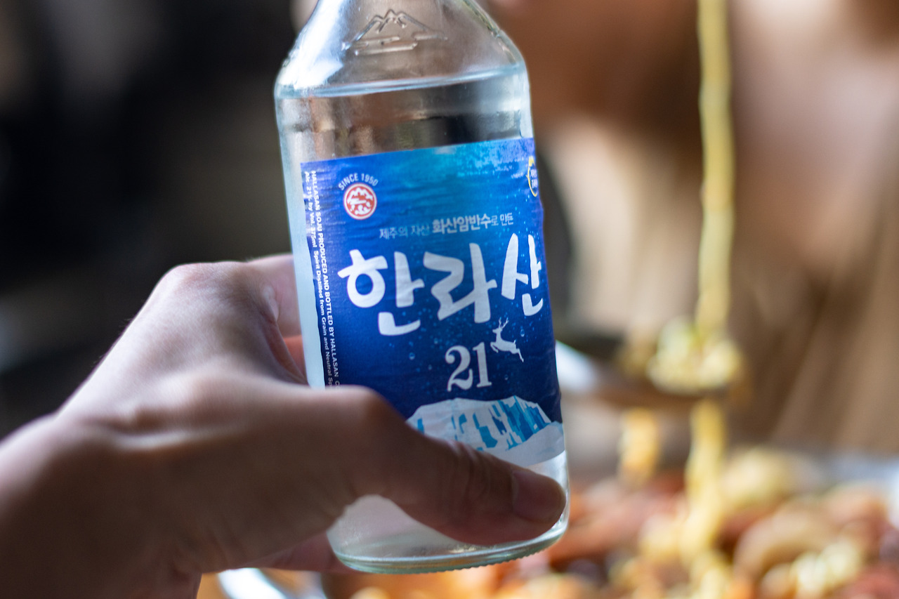 한인 마트에서 할인을 하길래 처음으로 사 본 '한라산' 21도짜리 소주가 홀짝홀짝 넘어갔다. 나는 미묘한 단 맛 때문에 소주를 정말 안 좋아한다. 그런데 21도쯤 되니 단 맛이 적고, 쨍하고 깔끔한 맛이 좋다. '이렇게 소주에까지 맛을 들이면 안 되는데...' 생각하면서 한 잔을 더 따랐다.