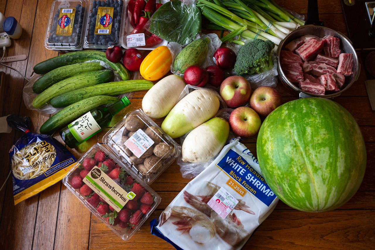 기본적으로 식재료들이 싼 한국 마트지만, 주로 목요일부터 일요일까지 특별히 할인하는 품목들이 있다. 그리고 그 할인의 정도가 꽤 커서 행사를 하지 않을 때 제 값 주고 사는 것이 왠지 아깝게 느껴지곤 한다. 양파는 5파운드에 99센트, 파는 10단에 99센트, 사과나 복숭아, 자두는 2파운드에 99센트, 양배추는 가끔 7파운드 99센트, 막갈비 1파운드에 79센트, 한여름엔 수박 커다란 한 통에 $4.99 등등, 이제는 어느 계절에 어떤 품목이 할인하는지 트렌드조차 익혀가는 것 같다. 이제 곧 밤이나 감 등이 싸지기 시작할 것으로 예상된다. 이 정도로만 주식 판을 읽을 수 있어도 주식을 한 번 시작해 볼 텐데... 그렇지 못하니 열심히 마트 전단지를 보며 조금씩 아껴 알뜰하게 먹고사는 일이 나에게 맞다.