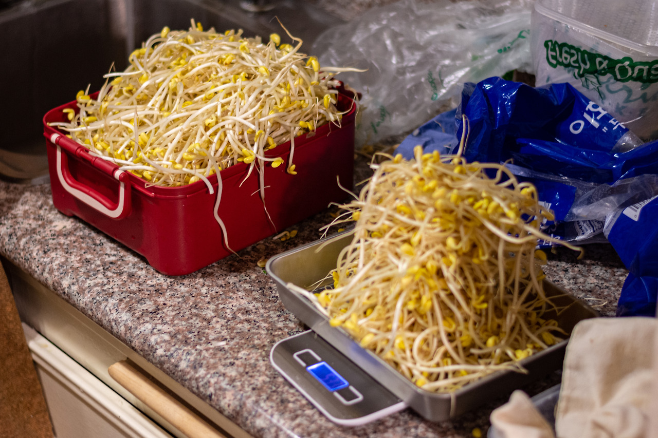한국 마트에 갈 때면 그때 그때 한 번, 혹은 두 번 먹을 콩나물 작은 봉지를 사 오곤 했다. 그럴 때마다 눈에 밟히는 것이 그 옆에 있는 커다란 콩나물 봉지였다. 무려 5파운드나 되는 콩나물인데, 작은 봉지를 사는 것에 비해 가성비가 비교도 할 수 없이 좋았다. 그러나 워낙 많으니 혹시 다 못 먹고 버려질까 매번 고민만 하며 사지 못하다가, 어느 날 아내가 콩나물을 무르지도 쉬지도 않게 몇 주간 보관하는 방법을 알아내었다. 거기에 콩나물 무침이건, 콩불 스타일이건, 삼겹살에 곁들이는 파, 고수, 콩나물 무침의 형태건, 콩나물국이건, 콩나물밥이건, 어차피 콩나물을 아주 많이 먹는 우리이기에 한 번쯤 그 커다란 5파운드짜리의 콩나물 봉지를 사 오기로 했다. 2.2kg의 콩나물 포대라니. 왠지 마음이 풍족한 것이었다.