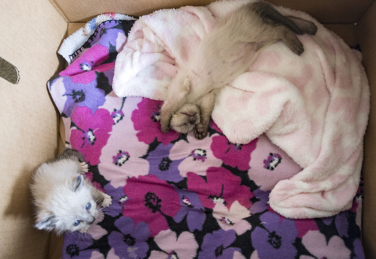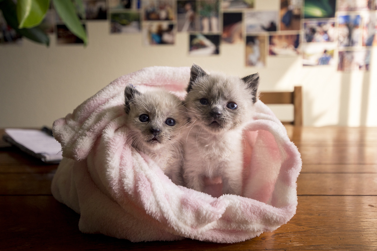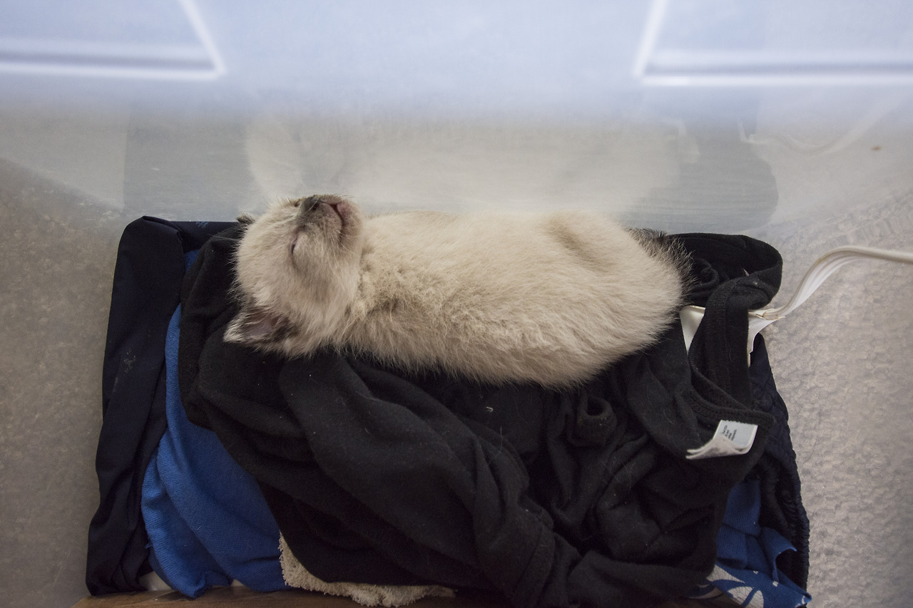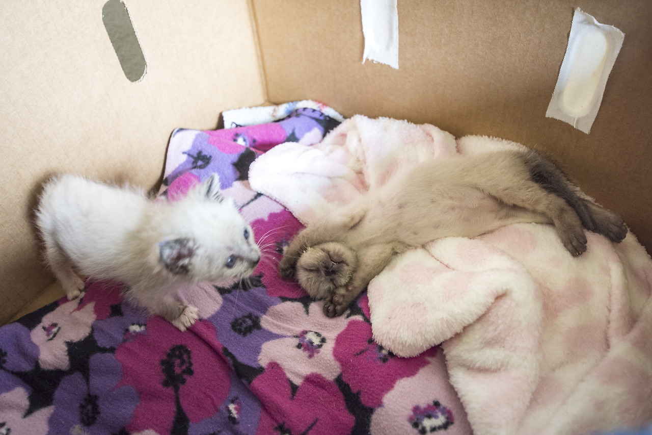 그렇게 안정적으로 일주일 정도 세 녀석이 커 가는 것을 보면서, 아직도 보호소 케이지에 남아 있는 남은 두 녀석의 생각이 너무나 많이 났다. 보호소에 속한 많은 봉사자들 중 젖먹이 고양이를 돌볼 수 있는 이들은 아무래도 적은 편이라 아직도 임보인들을 찾지 못했던 것이다. 많은 고민 끝에 이 즈음 되면 주로 아가 고양이들이 안정기에 접어들기 때문에, 다섯까지도 돌볼 수 있을 것이라고 믿기로, 혹은 바라기로 하며 나머지 둘도 결국엔 데려오게 되었다.