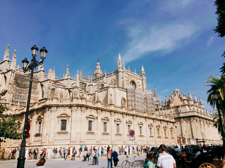 트램에서 내리자 세비야에서 가장 유명한 대성당이 눈앞에 들어왔다. 숙소가 세비야 대성당 근처인 것은 여러모로 좋은 점이 많다. 바르셀로나의 카탈루냐 광장처럼 세비야를 돌아다니기에 가장 중심이 되는 위치이기도 하고 밤에 언제든지 세비야 대성당의 야경을 감상할 수 있다는 것도 또 하나의 매력 중에 하나이다.