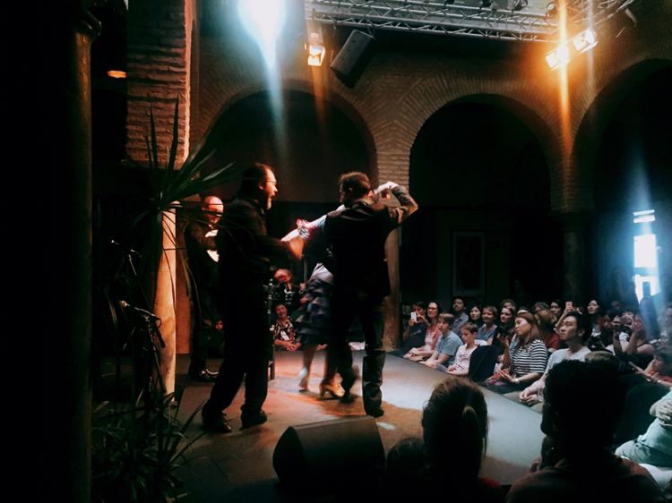 플라멩고 공연은 작은 무대 위에 춤추는 남녀 각각 한 명, 노래 부르는 사람 한 명, 기타 연주자 한 명 해서 총 4명이서 무대를 꾸며간다. 개인적인 생각이지만 플라멩고춤은 결코 화려하거나 멋있는 춤이라고 할 수는 없을 것 같다. 하지만 예전에 사람의 감정을 표현하는 가장 상위 단계가 춤이라는 이야기를 들은 적이 있는데 플라멩고를 보니 그 말의 의미가 무엇인지 조금은 이해할 수 있을 것 같았다.그 만큼 공연자가 몸으로 어떠한 감정을 전달하려고 하는지 고스란히 느낄수 있는 공연이었다. 가끔은 우스꽝스러운 동작들도 나오는데 공연자의 표정이나 몸짓이 사뭇 진지하여 결코 가볍게 받아들일 수 없다.