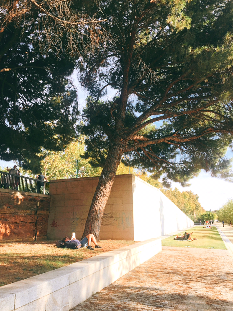 그렇게 강가를 따라 걷다 보니 어느새 스페인 광장에 도착했다. 스페인 광장은 마리아 루이사 공원과 함께 붙어있는데 공원의 규모가 엄청나게 커서 강가보다 운동하는 사람들이나 쉬는 사람들을 훨씬 많이 만나 볼 수 있다.