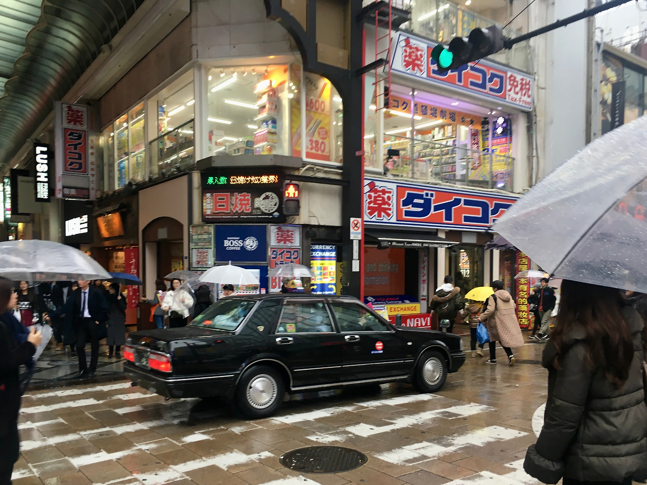 식사 후 신사이바시 거리 쪽으로 이동했다. 지붕이 설치되어 있어 비 오는 날에도 돌아다니기 수월했다. 신호를 기다리는 동안 전날 들렀던 건너편 2층 드럭스토어를 올려다보았다. 유행하던 복숭아 맛 곤약젤리를 구하려고 온갖 드럭스토어는 다 뒤지고 다니다가 겨우 구한 곳이었다. 웬만한 곳은 죄다 품절이라서 반복되는 허탈함 끝에 마주한 오아시스 같은 그런 곳이었는데, 아니나 다를까 언제 규정이 바뀐 건지 컵에 담긴 곤약젤리는 질식사 위험이 있어 국내 반입이 금지되었다는 사실을 뒤늦게 깨달았다. 통관이 되지 않으면 전부 폐기해야 한다는데 그럼 돈이 너무 아깝지 않나. 구매 당시 반품이 안 된다고 했던 것 같아 상당히 난처했는데 빠듯한 살림에 주변 선물한답시고 넉넉하게 샀던 거라 혼자 해치우기엔 양도 많고 여러모로 낭비였다. 결국 다음 날 다시 찾아가 사정을 설명했더니 피차 당황스러워하면서도 예외 환불을 인정해 주었다. 한국인 직원이 있어 소통이 수월했던 기억이 난다. 사정을 헤아려 준 덕분에 울며 겨자 먹기로 내가 다 먹어 치워야 하는 상황은 면했다. 만일 환불하지 못했다면 이 무슨 눈물 젖은 복숭아 젤리란 말인가. 별안간 해프닝이었지만 무사히 해결되어 다행이었던 곳이라 나도 모르게 아련한 시선으로 바라보았다.