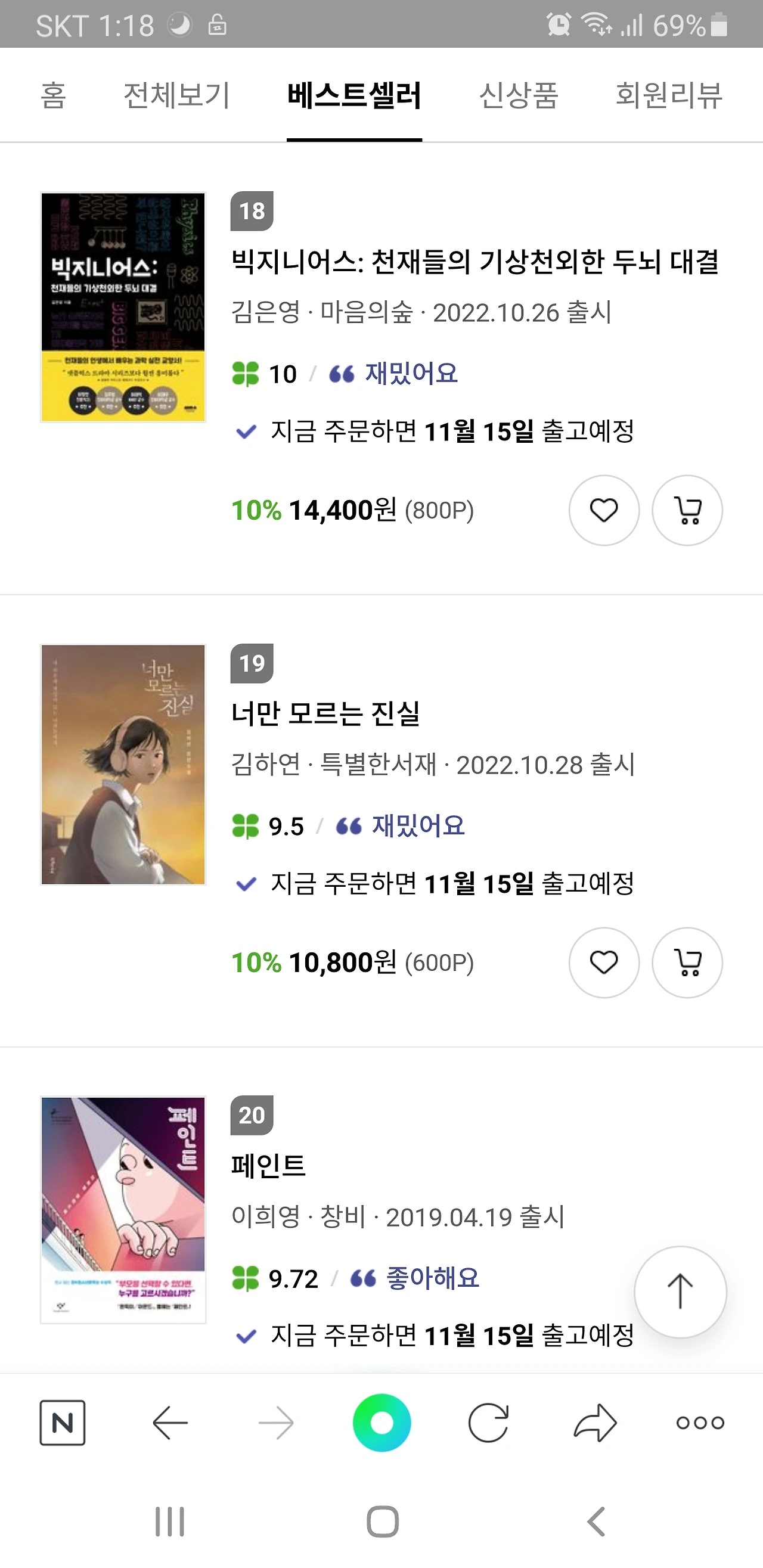 교보문고 청소년 온라인 주간 베스트셀러 18위
